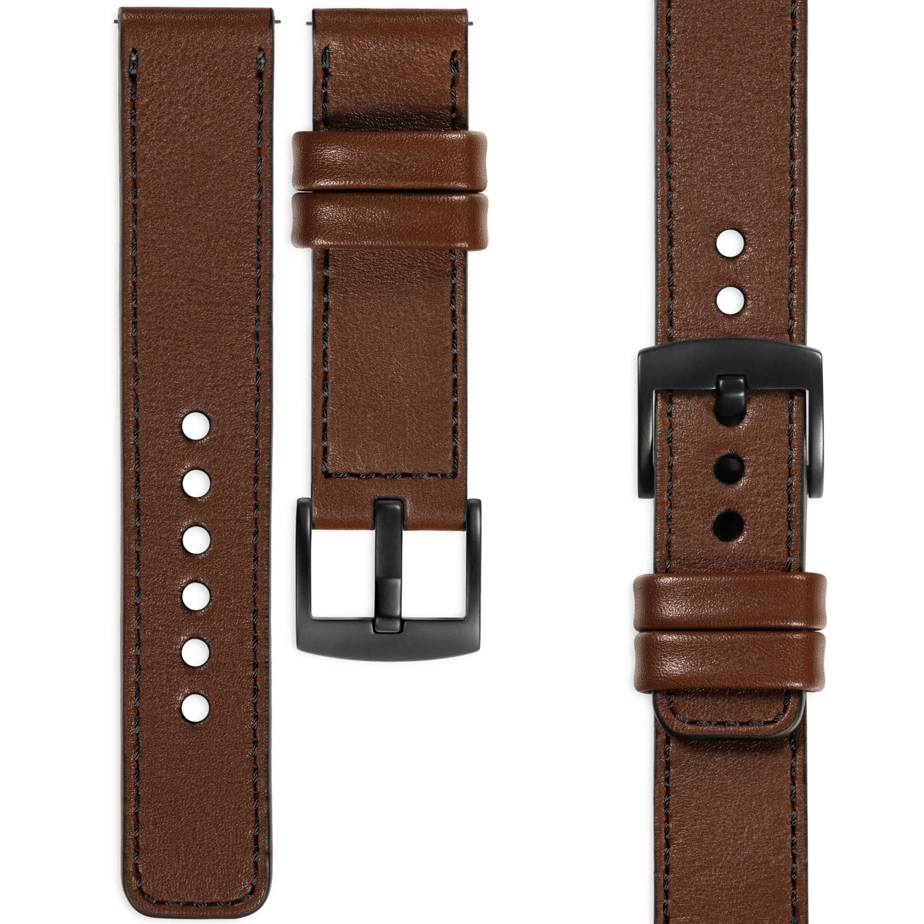 moVear Prestige C1 22mm Leather strap for Huawei Watch 5 4 3 2 1 - GT / Pro / Ultimate (48/46mm) | Dark brown, elegant Black stitching