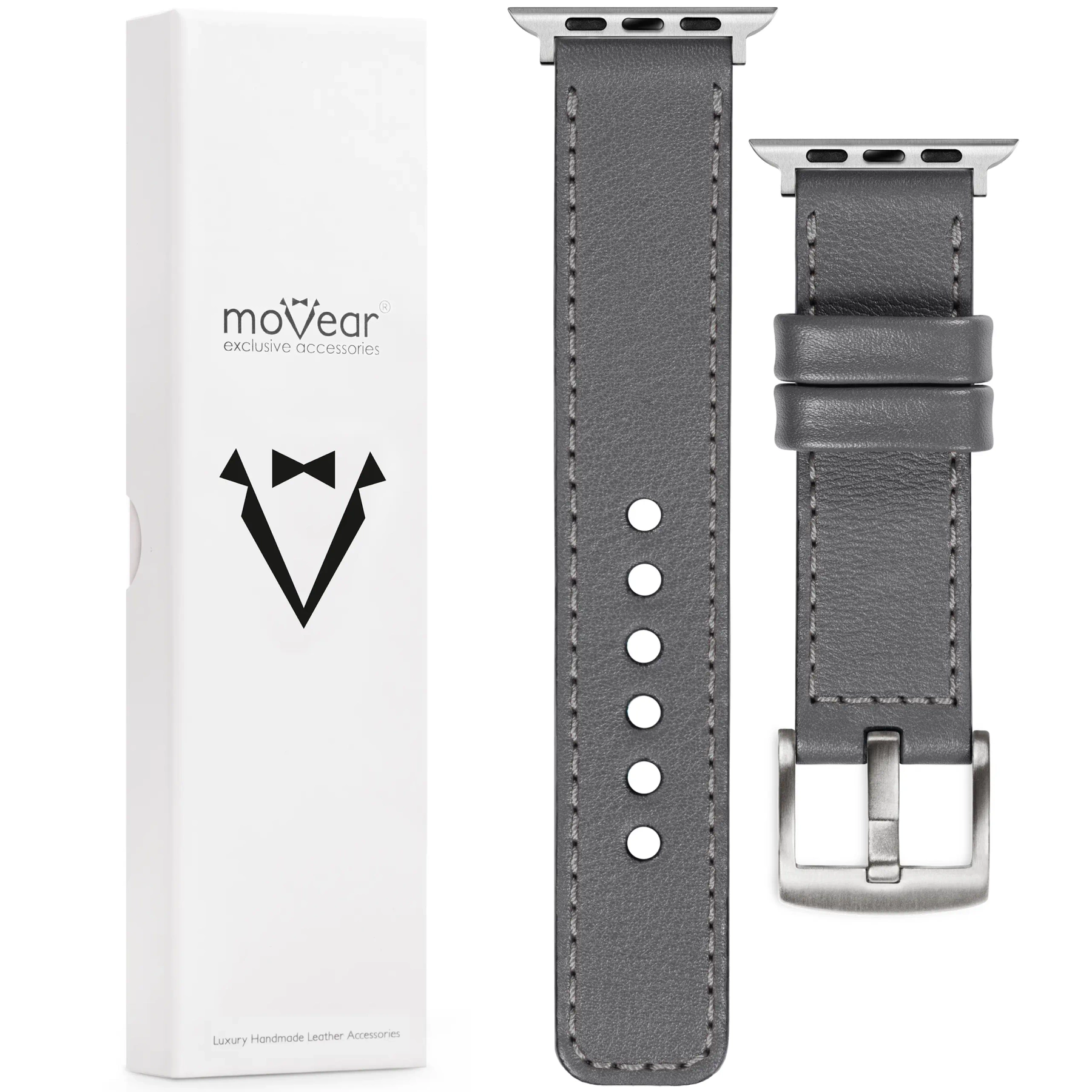 moVear Prestige C1 22mm Leather strap for Apple Watch 10 / 9 / 8 / 7 / 6 / 5 / 4 / SE (42/41/40mm) | Gray, elegant Gray stitching