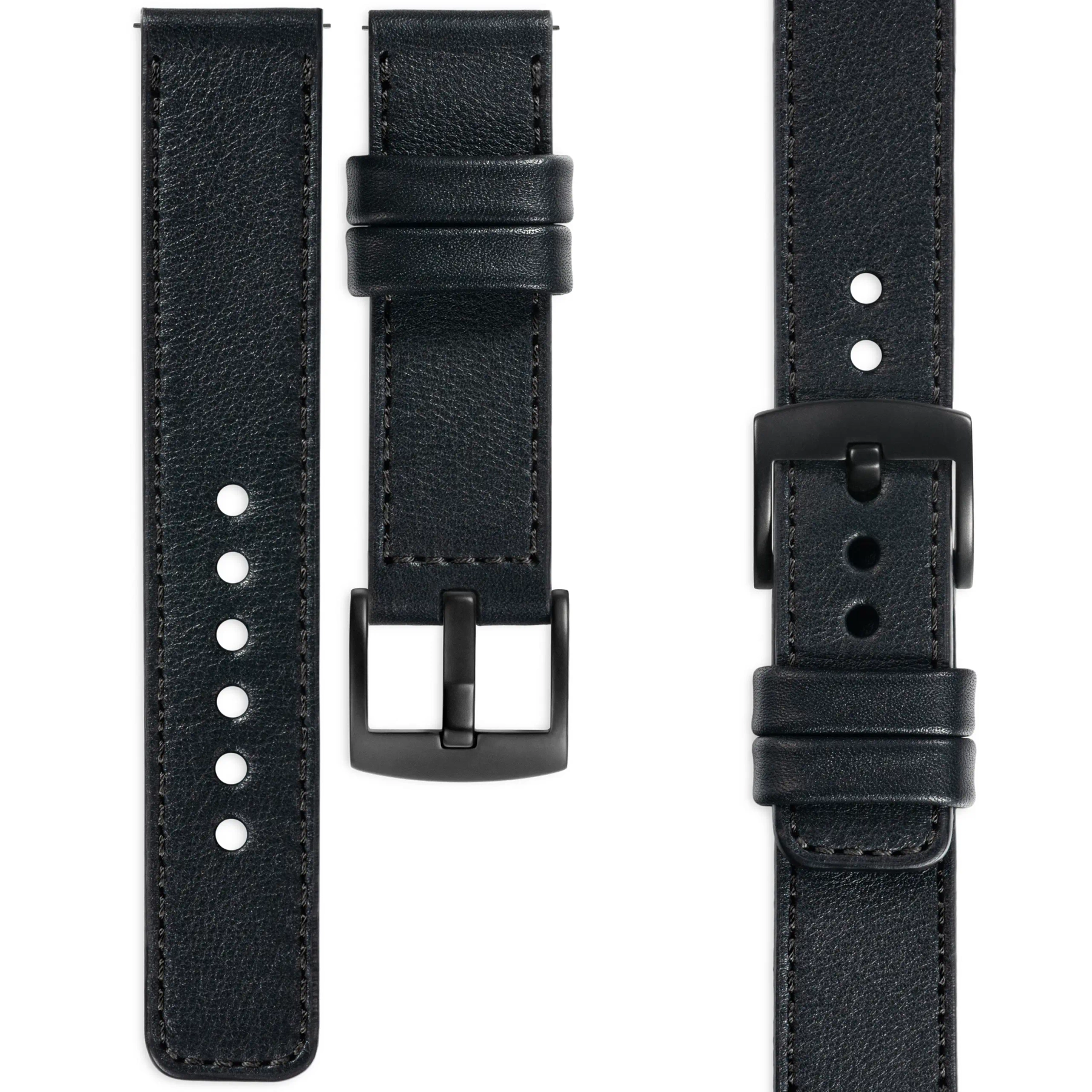 moVear Prestige C1 22mm Leather strap for watch / smartwatch | Black, elegant Black stitching
