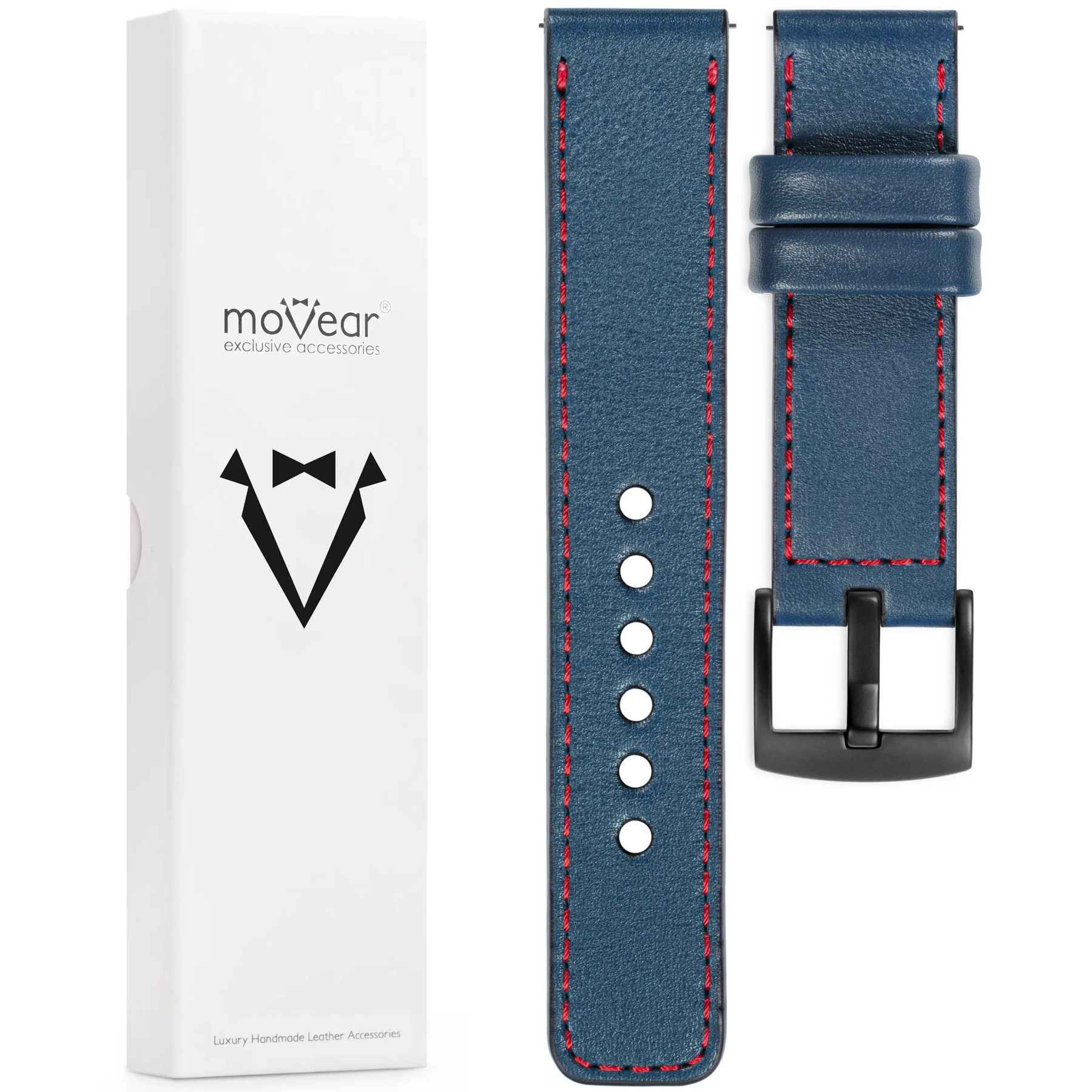 moVear Prestige C1 22mm Leather strap for watch / smartwatch | Blue Jeans, elegant Red stitching