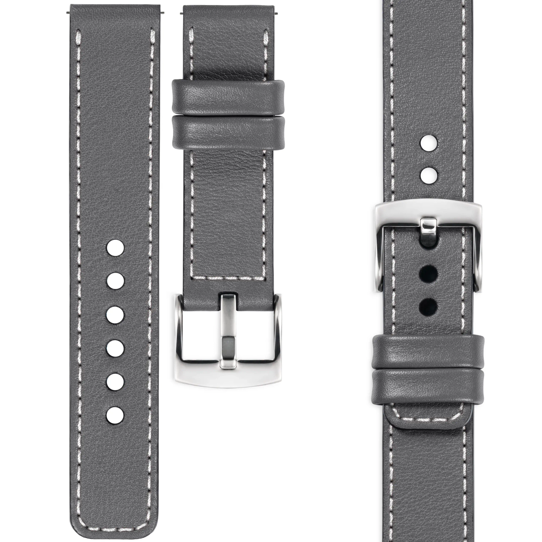 moVear Prestige C1 22mm Leather strap for watch / smartwatch | Gray, elegant White stitching