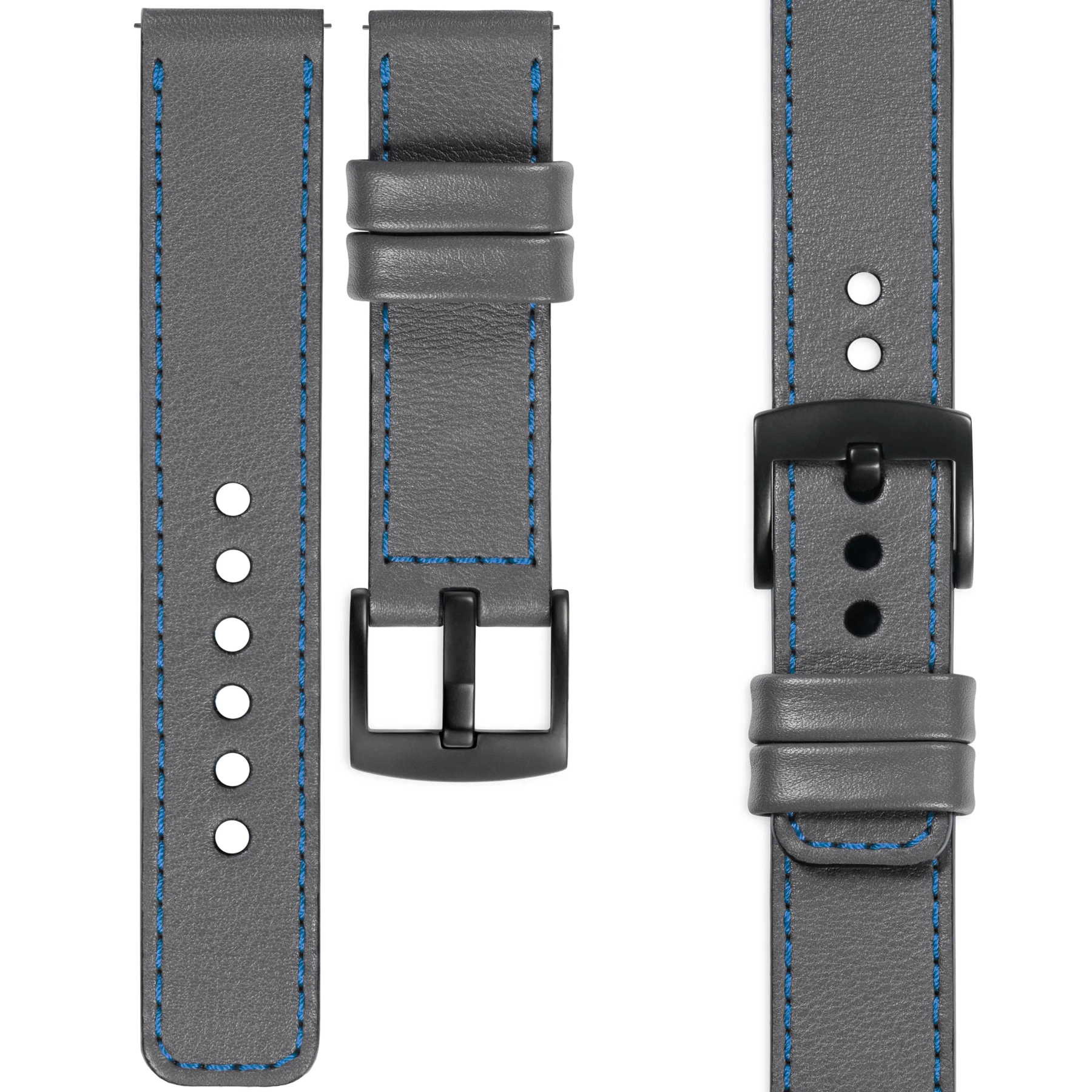 moVear Prestige C1 22mm Leather strap for watch / smartwatch | Gray, elegant Blue stitching