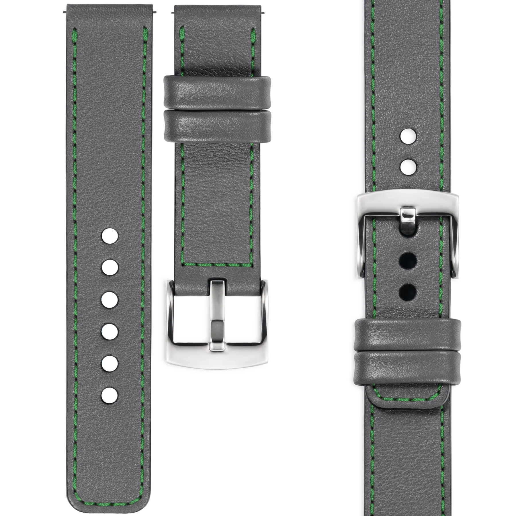 moVear Prestige C1 22mm Leather strap for watch / smartwatch | Gray, elegant Green stitching