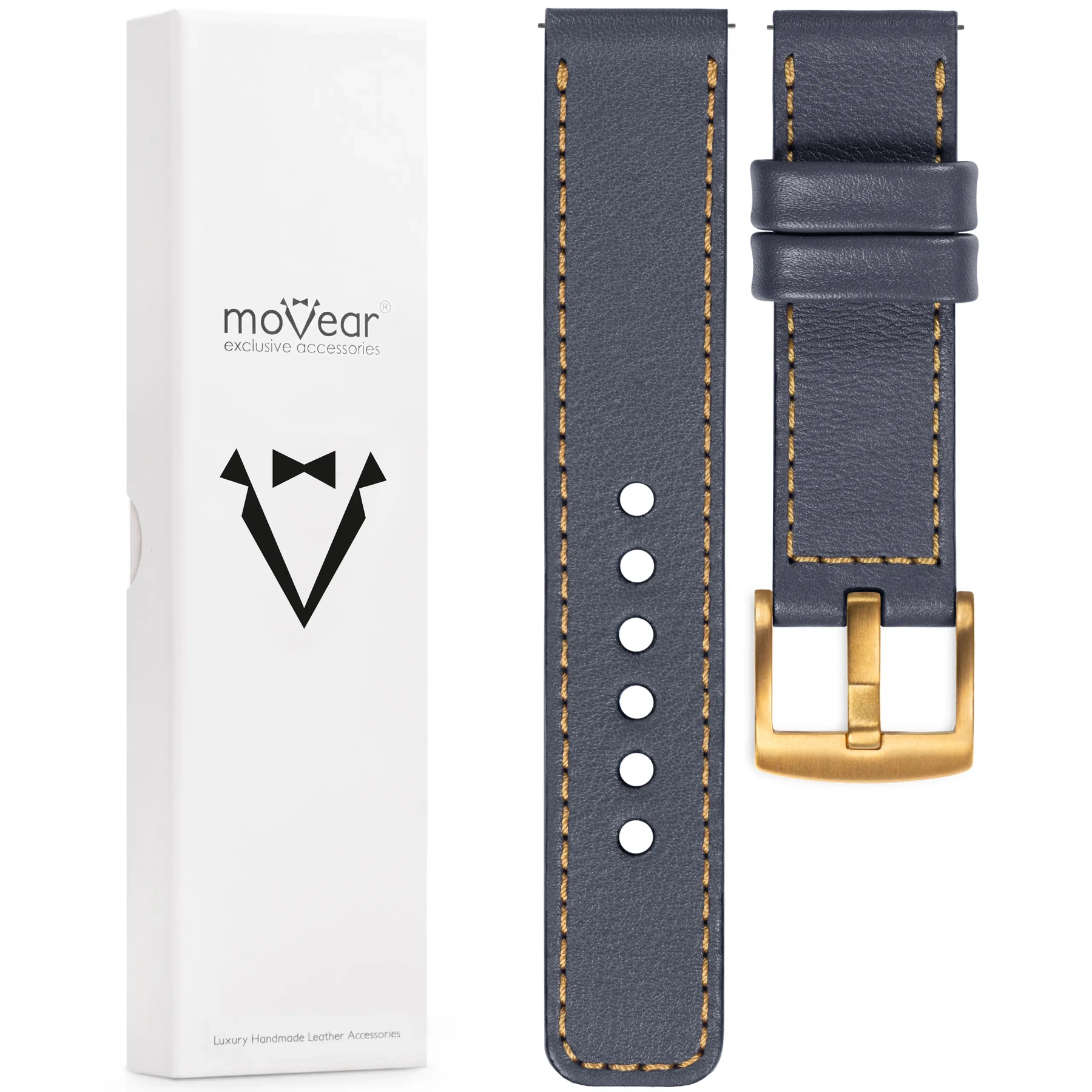 moVear Prestige C1 22mm Leather strap for watch / smartwatch | Steel gray, elegant Gold stitching