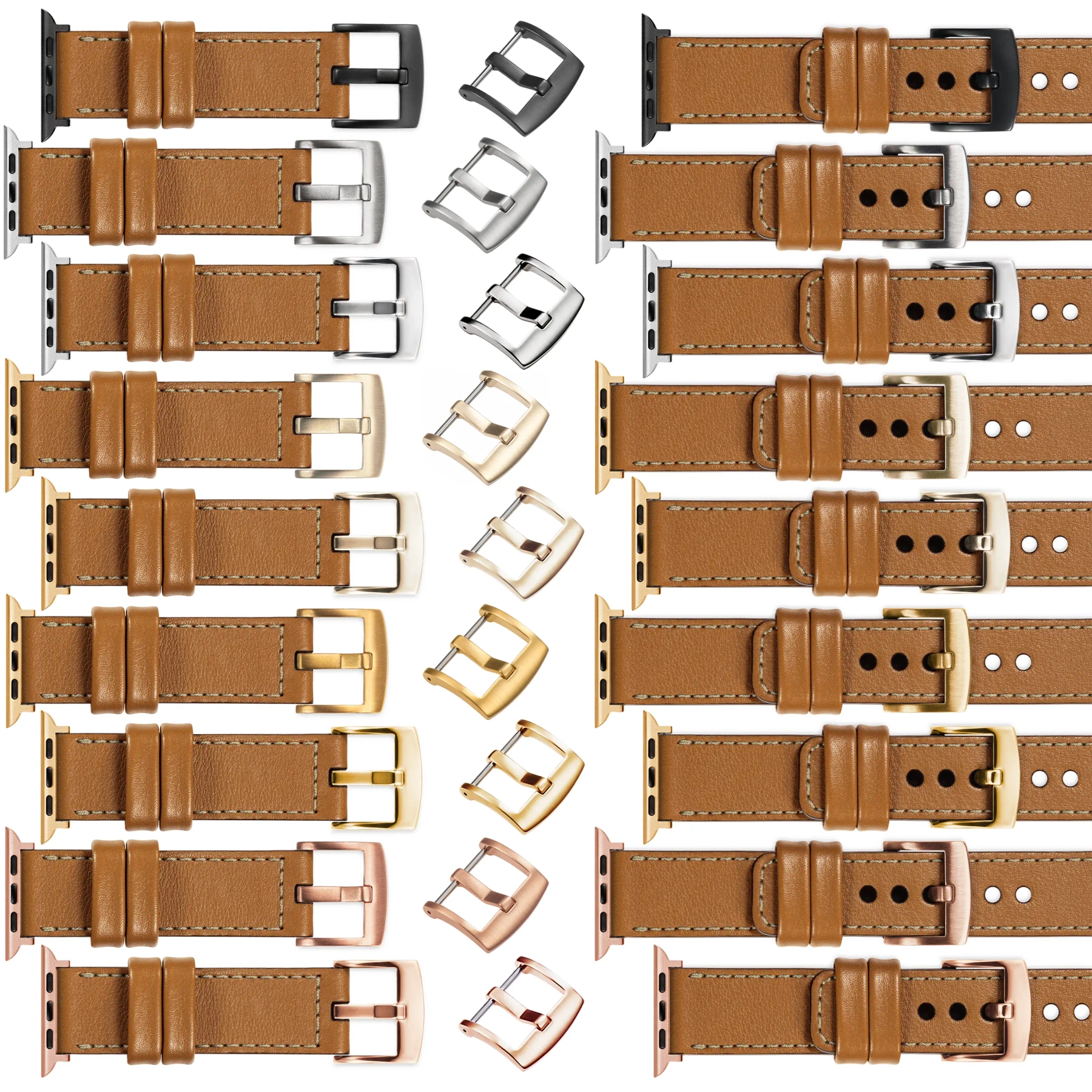 moVear Prestige C1 22mm Leather strap for Apple Watch 10 / 9 / 8 / 7 / 6 / 5 / 4 / SE (42/41/40mm) | Light brown, elegant Creamy stitching