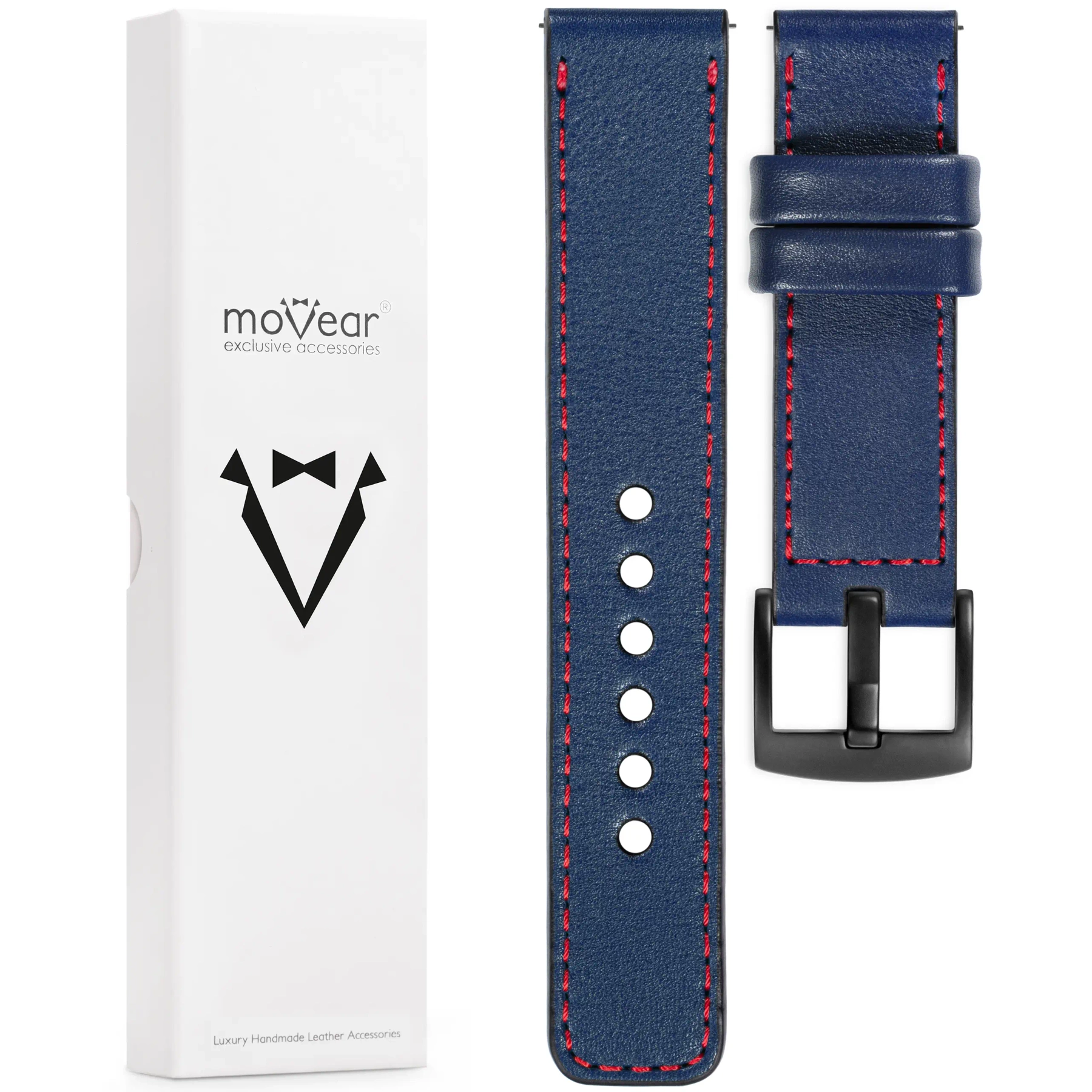 - 1 pc. moVear Prestige C1 - Leather strap 22mm wide, color of the belt Navy blue