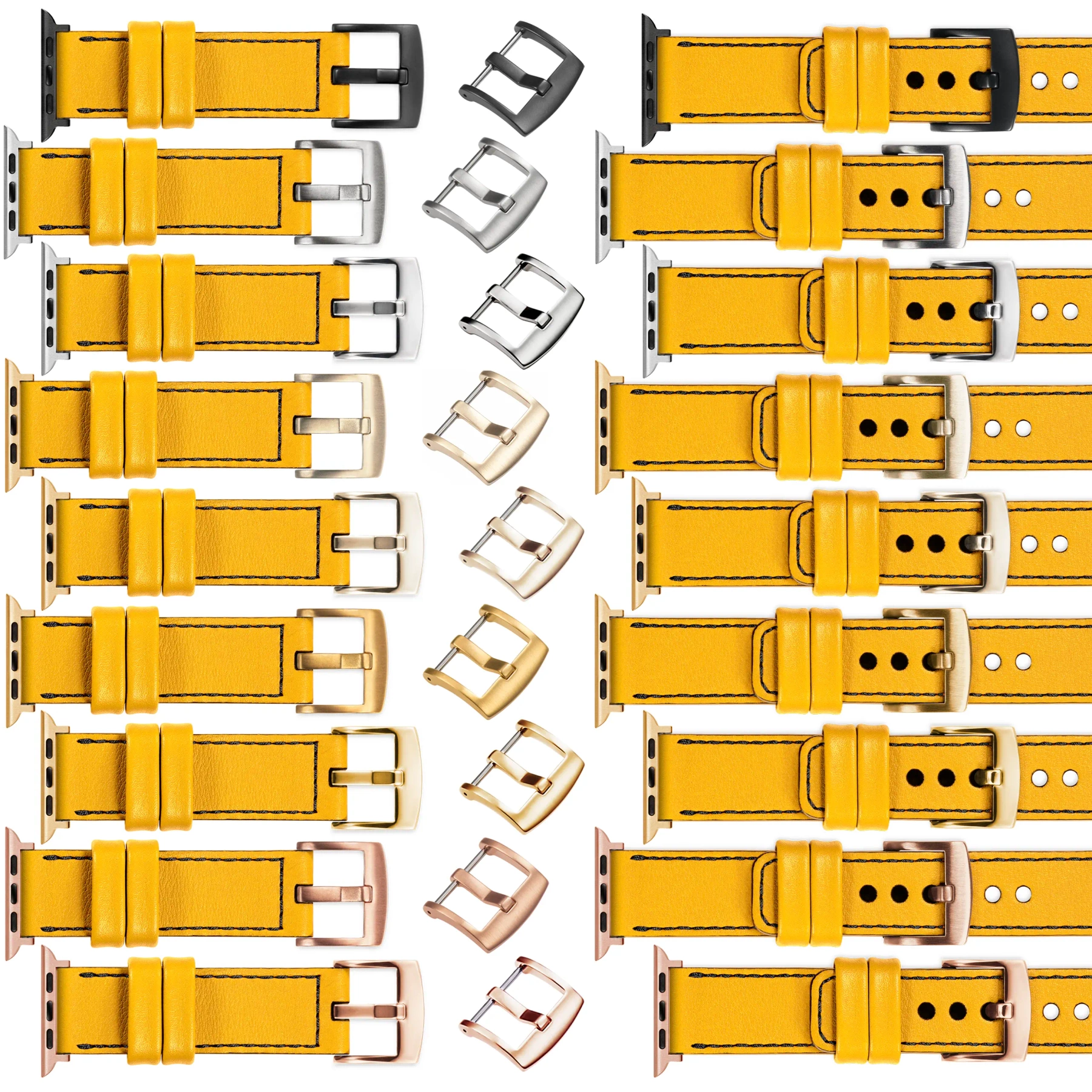 moVear Prestige C1 22mm Leather strap for Apple Watch 10 / 9 / 8 / 7 / 6 / 5 / 4 / SE (42/41/40mm) | Yellow, elegant Black stitching