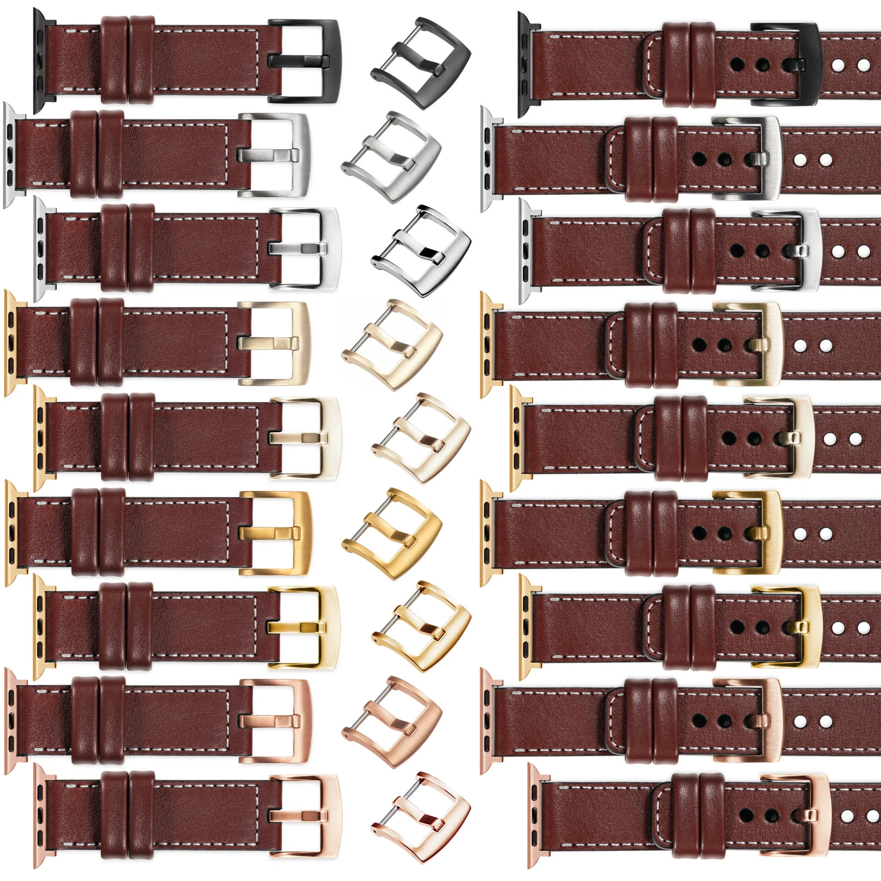 We make straps for Apple Watch in many different configurations. If the default buckle and adapter (Silver) needs to be changed to a different color - we offer the following options: