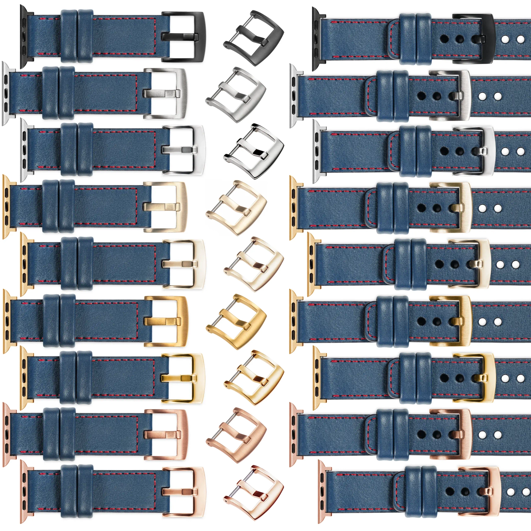 moVear Prestige C1 24mm Leather strap for Apple Watch 10 / 9 / 8 / 7 / 6 / 5 / 4 / SE (46/45/44mm) & Ultra (49mm) | Blue Jeans, elegant Red stitching
