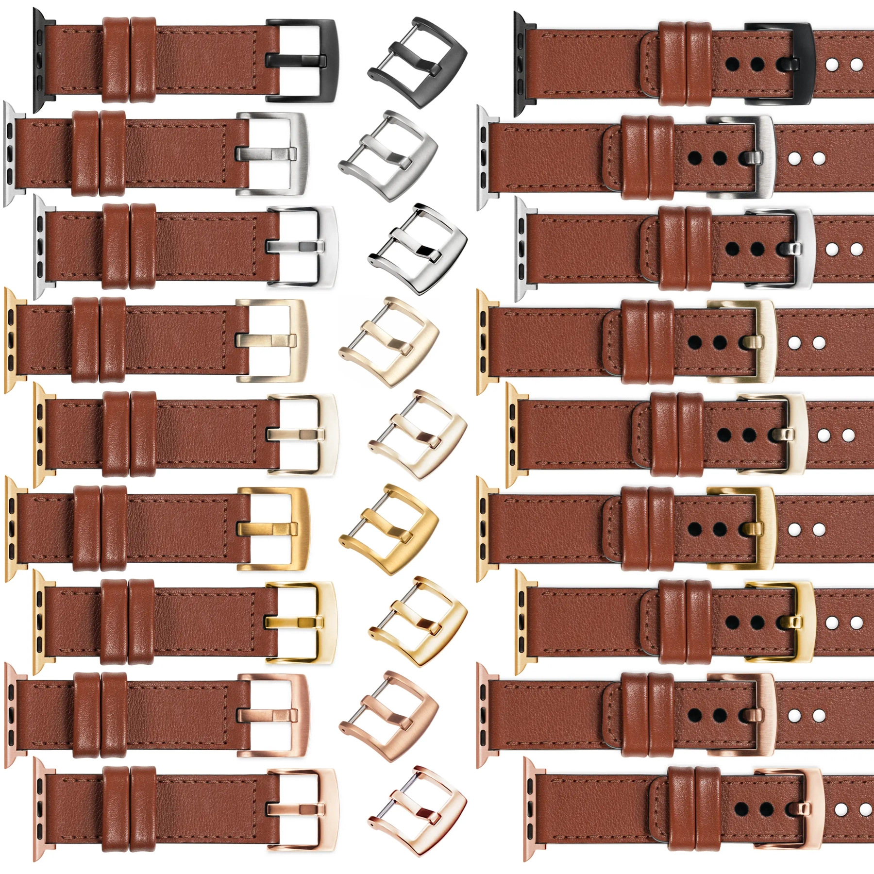 moVear Prestige C1 24mm Leather strap for Apple Watch 10 / 9 / 8 / 7 / 6 / 5 / 4 / SE (46/45/44mm) & Ultra (49mm) | Brown, elegant Brown stitching