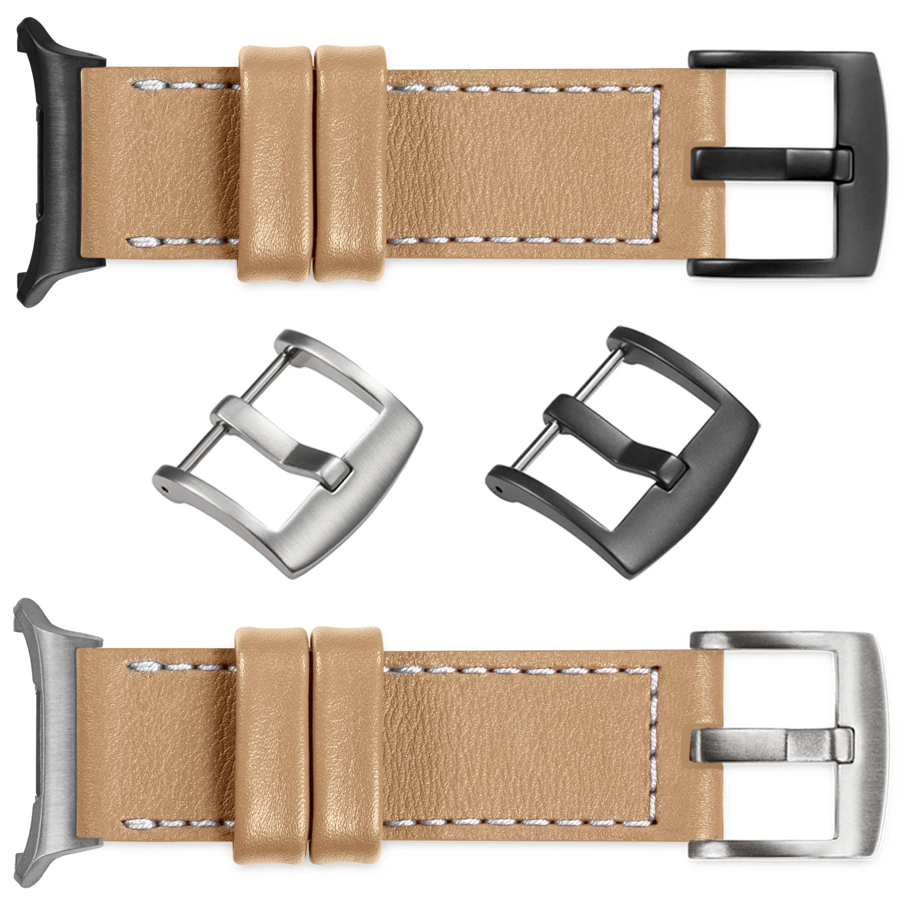 moVear Prestige C1 24mm Leather strap for Samsung Galaxy Watch Ultra | Cappuccino, elegant White stitching