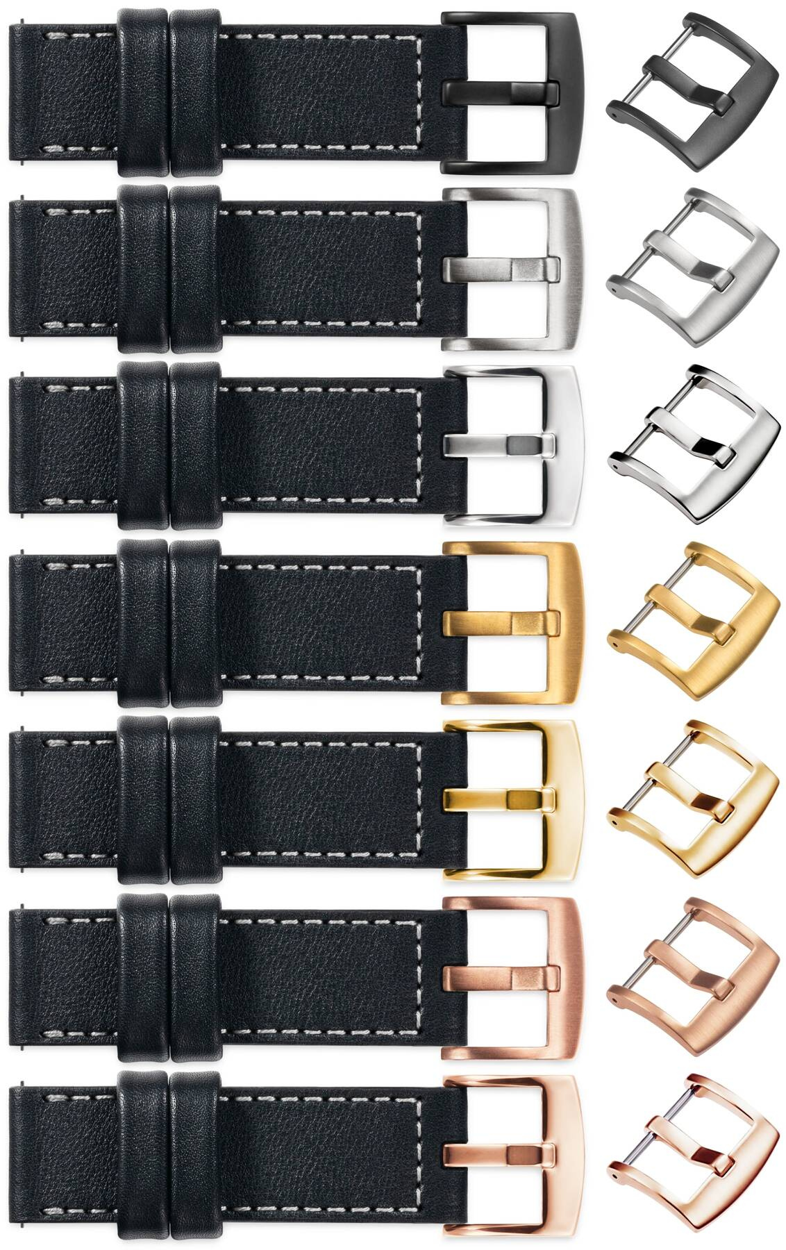 We make watch straps in many different configurations. If the default buckle (Silver) needs to be changed to a different color - we offer the following options: