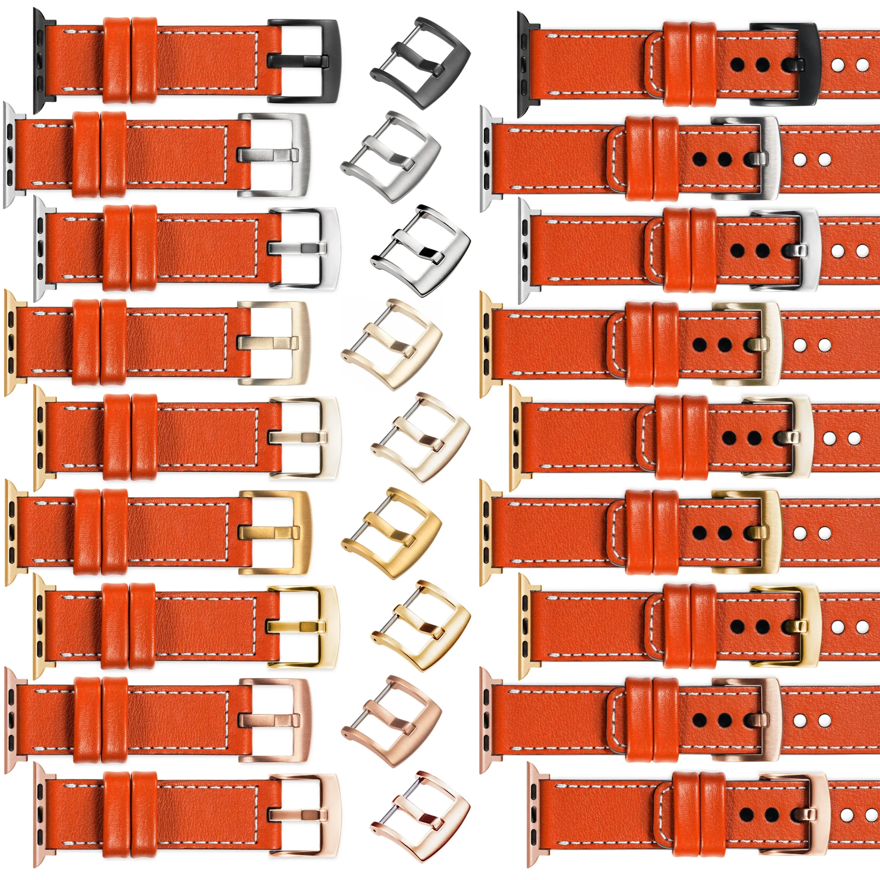 moVear Prestige C1 24mm Leather strap for Apple Watch 10 / 9 / 8 / 7 / 6 / 5 / 4 / SE (46/45/44mm) & Ultra (49mm) | Orange, elegant White stitching