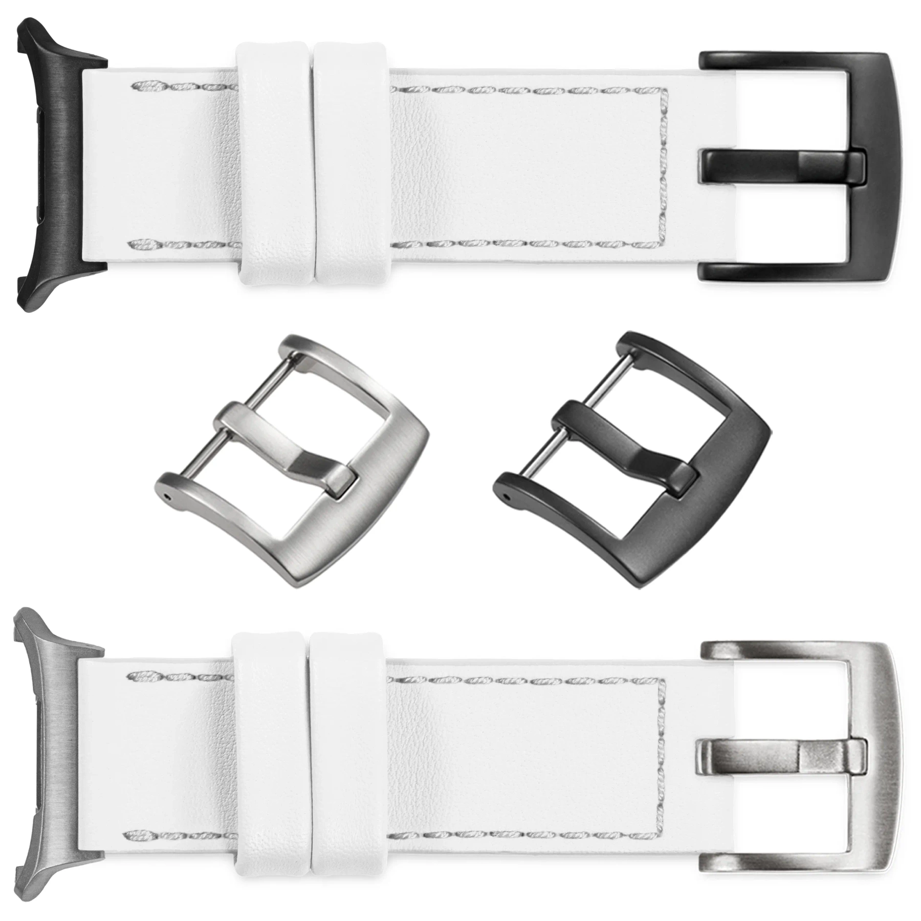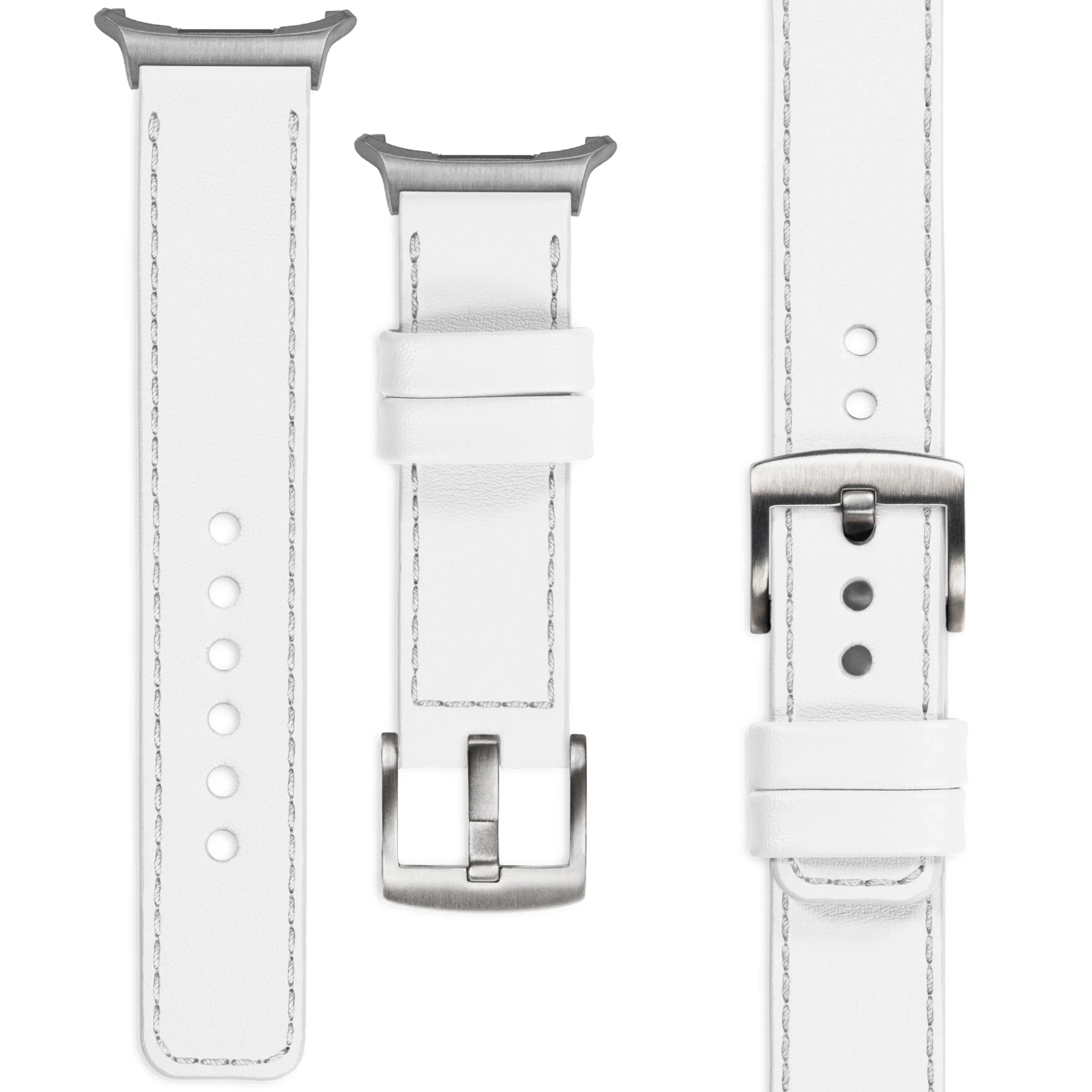 moVear Prestige C1 24mm Leather strap for Samsung Galaxy Watch Ultra | White, elegant Silver stitching