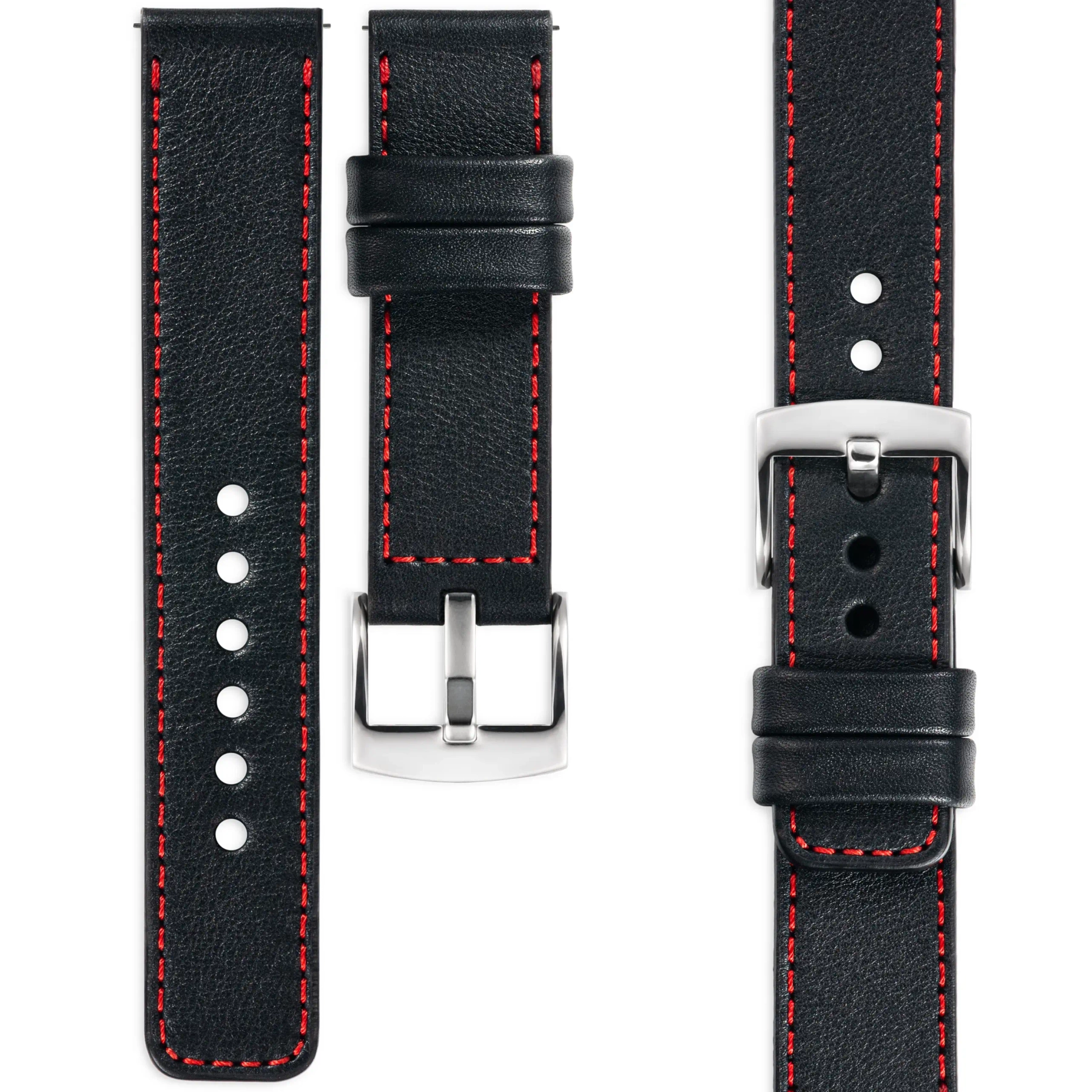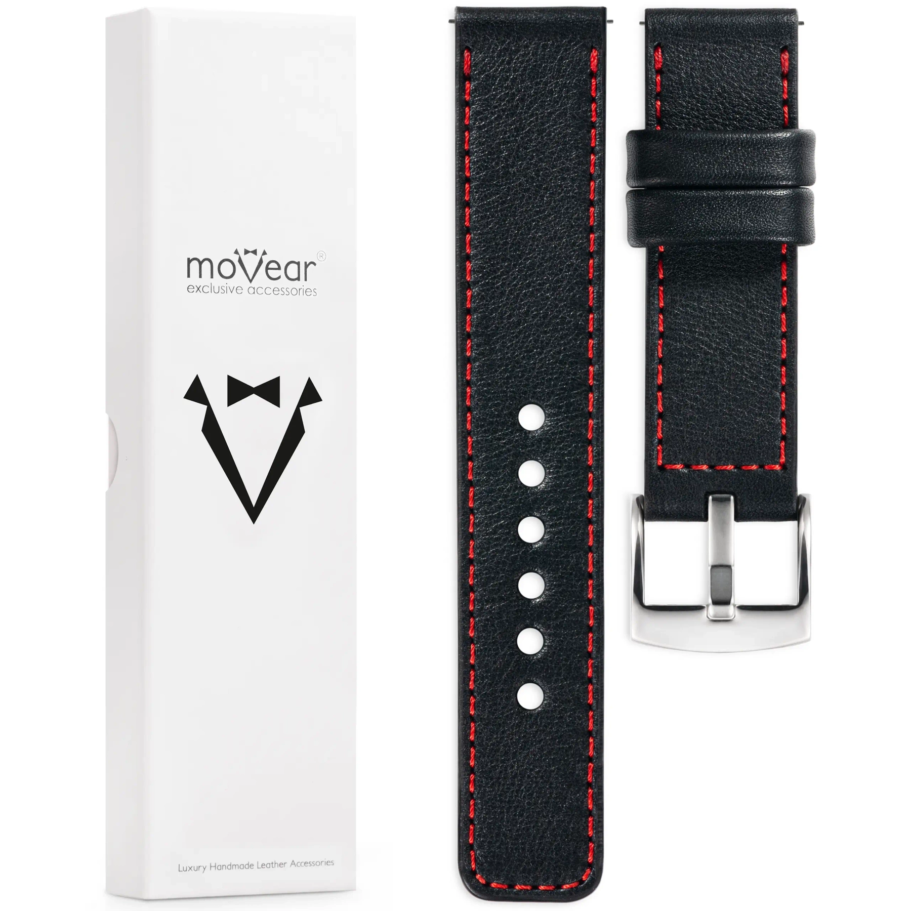 moVear Prestige C1 26mm Leather strap for watch / smartwatch | Black, elegant Red stitching