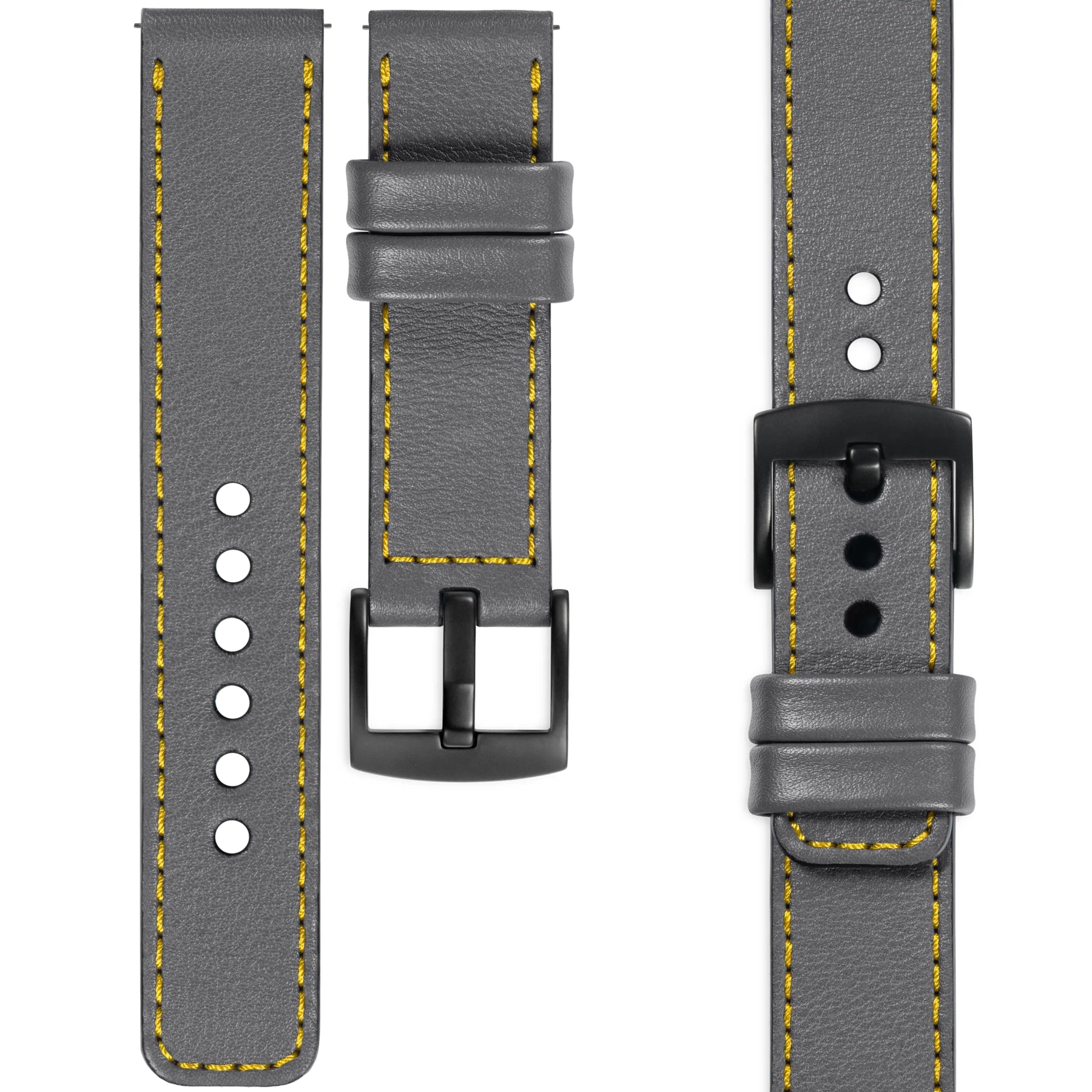 moVear Prestige C1 26mm Leather strap for watch / smartwatch | Gray, elegant Yellow stitching