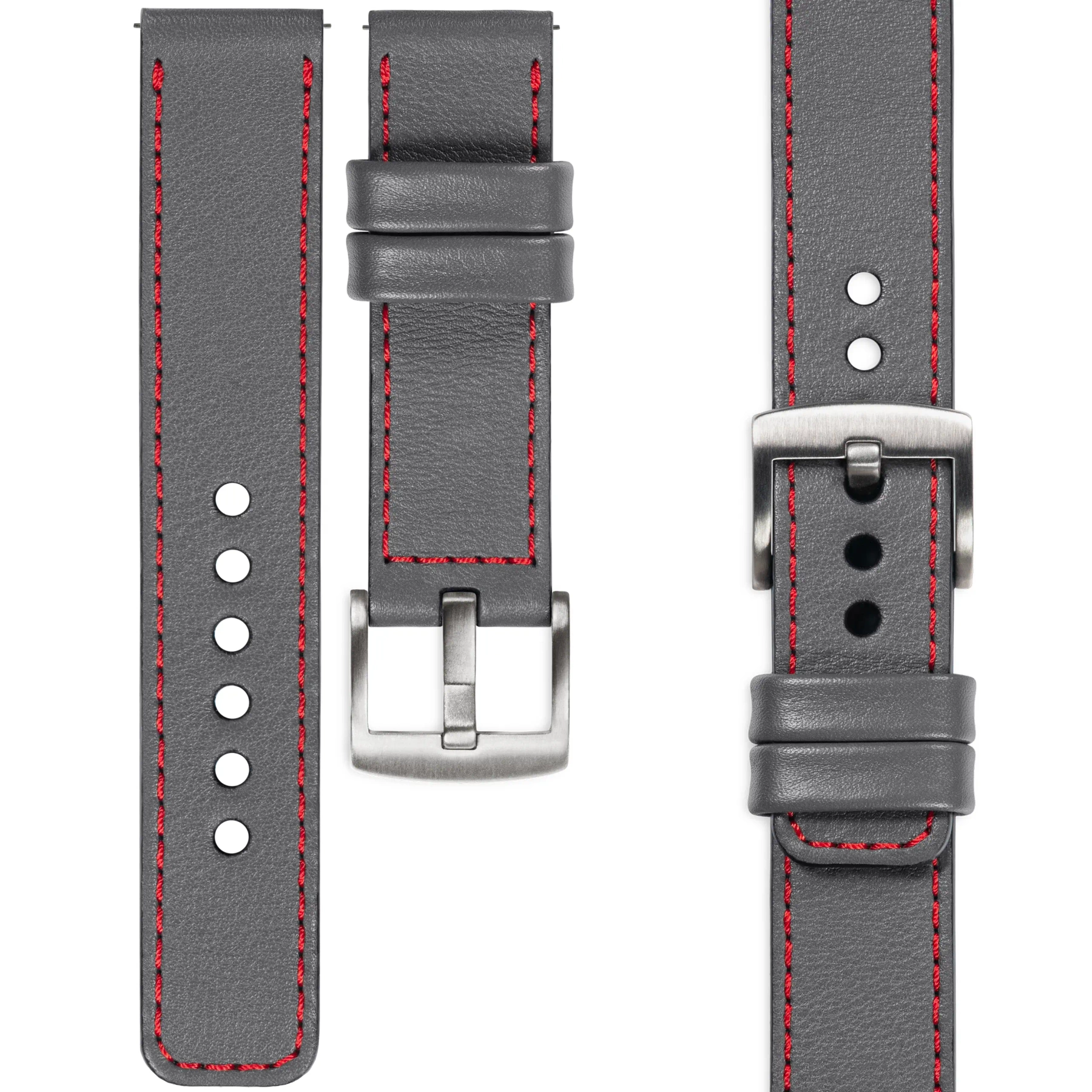 moVear Prestige C1 26mm Leather strap for watch / smartwatch | Gray, elegant Red stitching