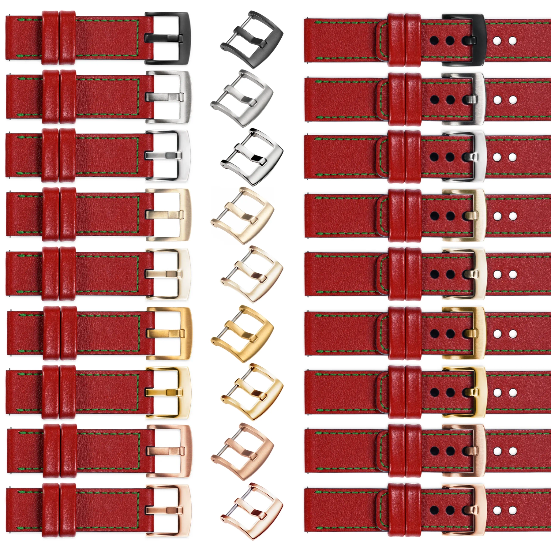moVear Prestige C1 26mm Leather strap for watch / smartwatch | Scarlet red, elegant Green stitching