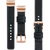 moVear Prestige C1 Leather strap for Garmin QuickFit 20mm (Fenix / Instinct - 43/42/40mm) | Black, elegant Rose gold stitching