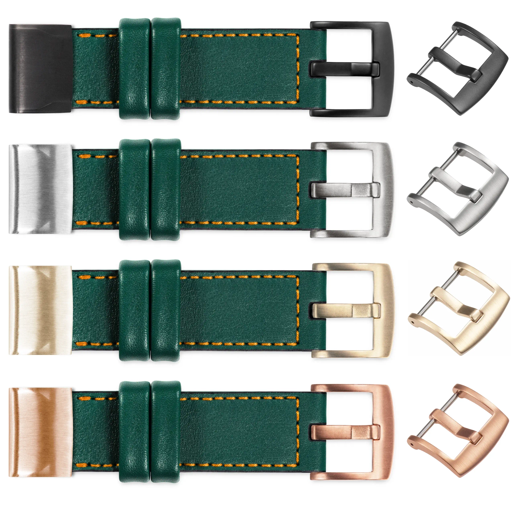 We make premium leather straps for Garmin QuickFit 20mm (Fenix / Instinct - 43/42/40mm) in many different configurations. If the default buckle and adapter (Black) needs to be changed to a different color - we offer the following options: