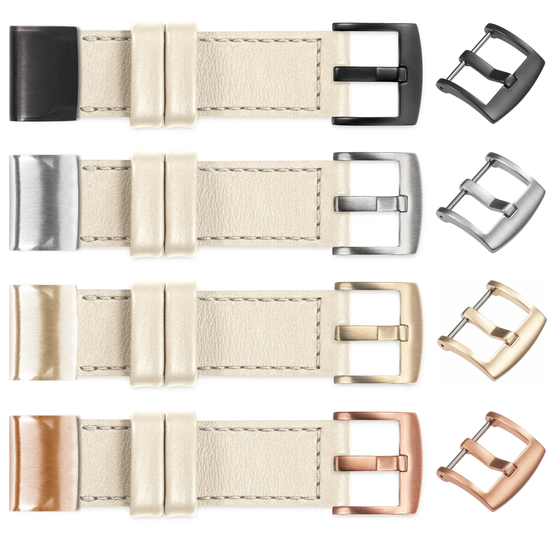 We make premium leather straps for Garmin QuickFit 20mm (Fenix / Instinct - 43/42/40mm) in many different configurations. If the default buckle and adapter () needs to be changed to a different color - we offer the following options: