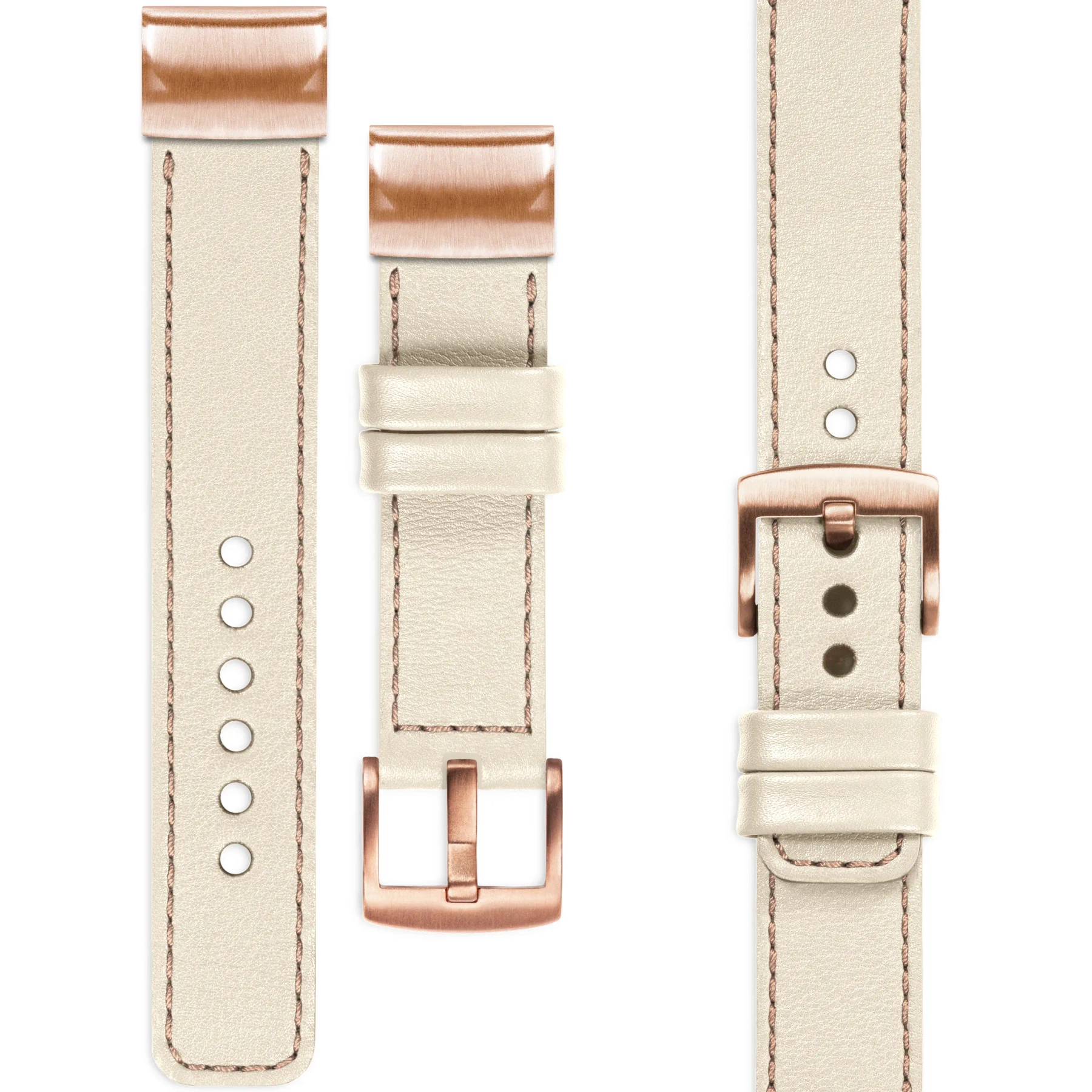 moVear Prestige C1 Leather strap for Garmin QuickFit 20mm (Fenix / Instinct - 43/42/40mm) | Nude, elegant Rose gold stitching