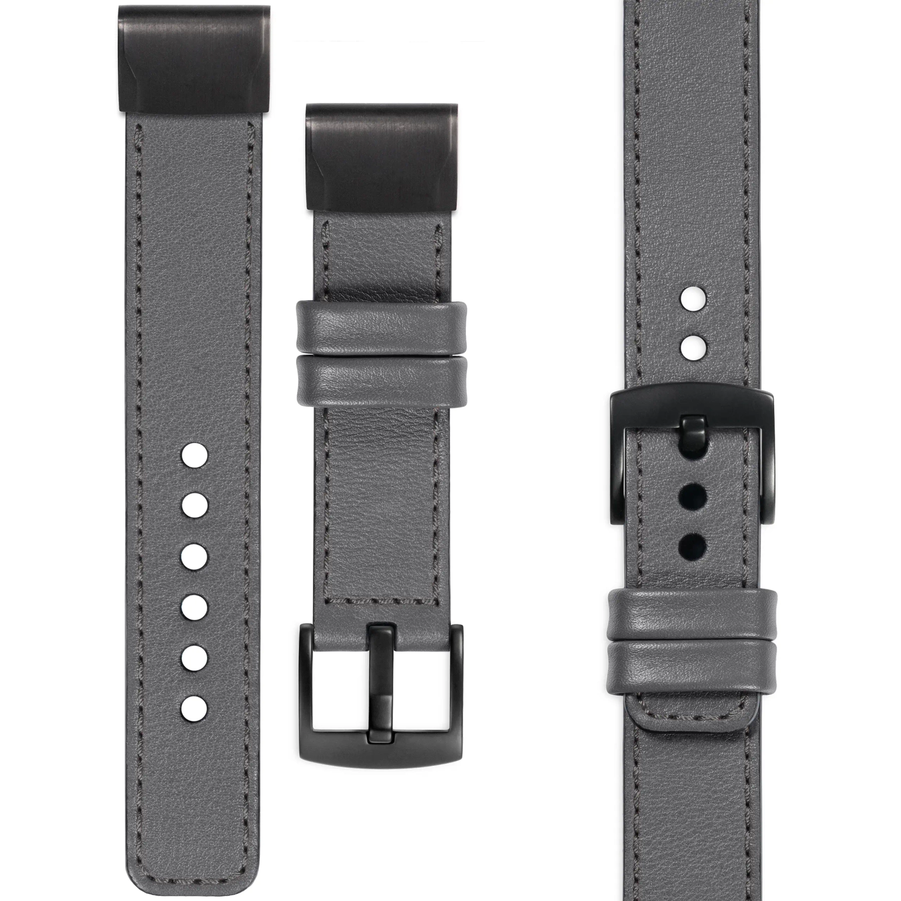 moVear Prestige C1 Leather strap for Garmin QuickFit 22mm (Fenix / Forerunner / Epix / Instinct / Enduro / Quatix / MARQ - 47/45mm) | Gray, elegant Graphite stitching
