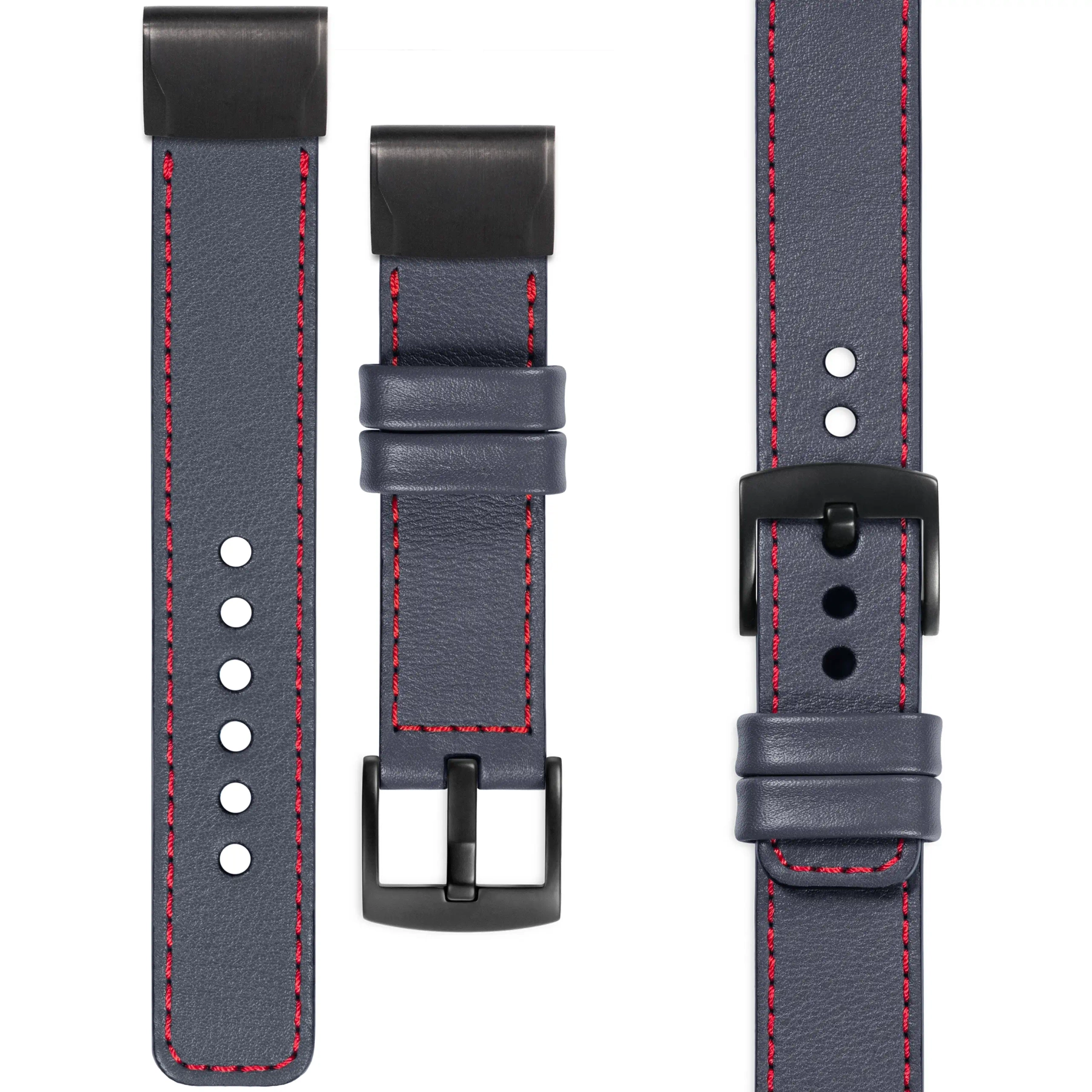 We make premium leather straps for Garmin QuickFit 26mm (Fenix / Epix / Quatix / Tactix / Enduro - 51mm) in many different configurations. If the default buckle and adapter (Black) needs to be changed to a different color - we offer the following options: