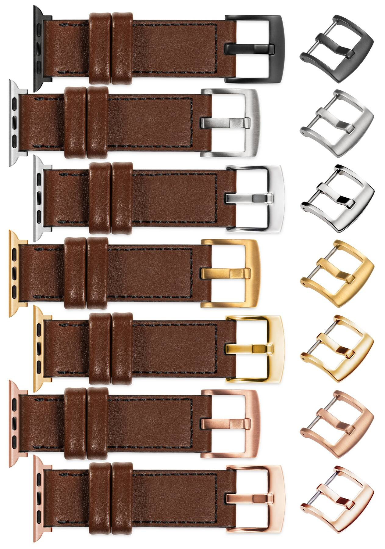 We make straps for Apple Watch in many different configurations. If the default buckle and adapter (Black) needs to be changed to a different color - we offer the following options: