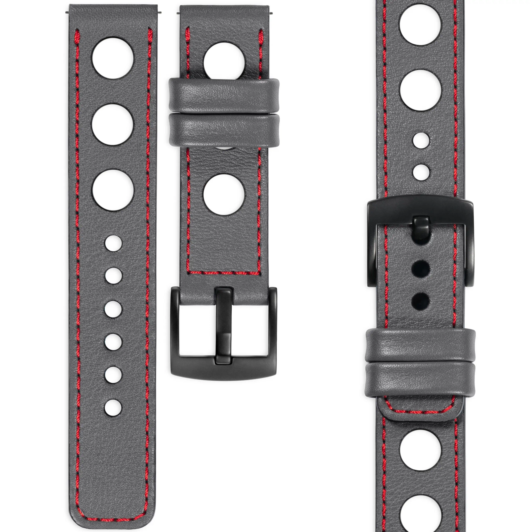 moVear Prestige R1 20mm Leather strap for Huawei Watch GT 3 2 1 / Pro (43/42mm) | Gray, elegant Red stitching
