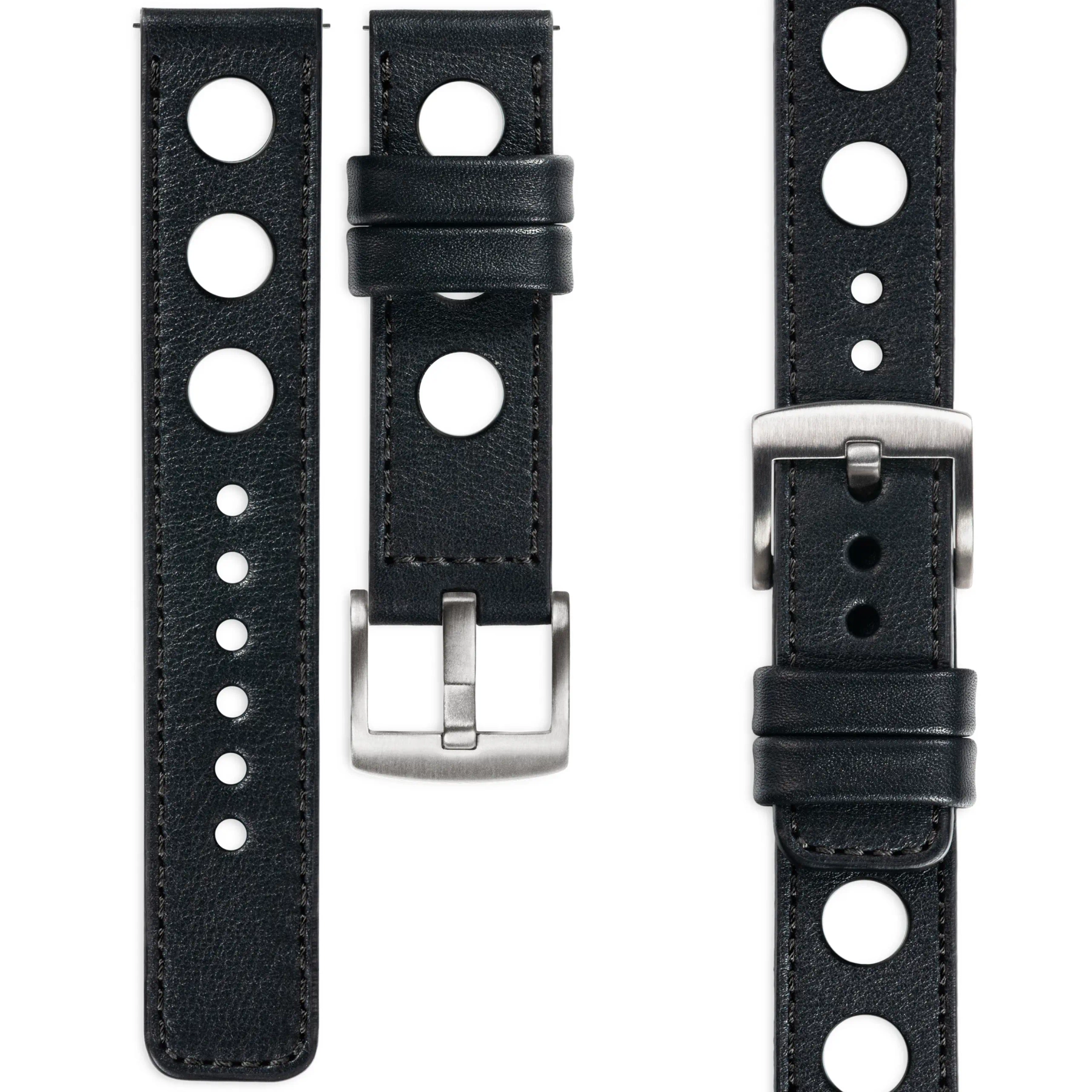 moVear Prestige R1 (Rally) 20mm Leather strap for watch / smartwatch | Black, elegant Black stitching