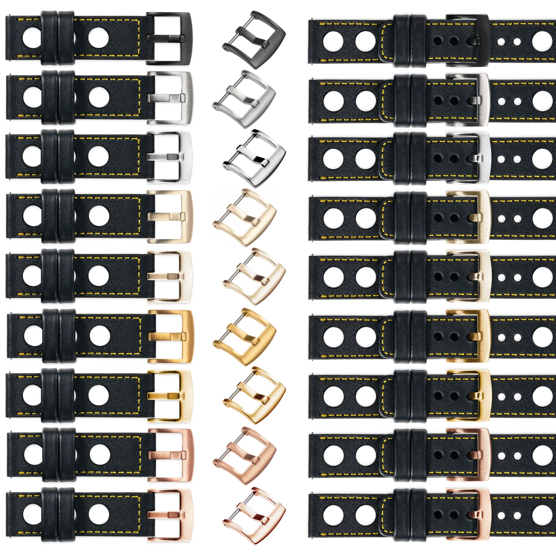 We make watch straps in many different configurations. If the default buckle (Silver) needs to be changed to a different color - we offer the following options: