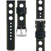 moVear Prestige R1 (Rally) 20mm Leather strap for watch / smartwatch | Black, elegant Yellow stitching