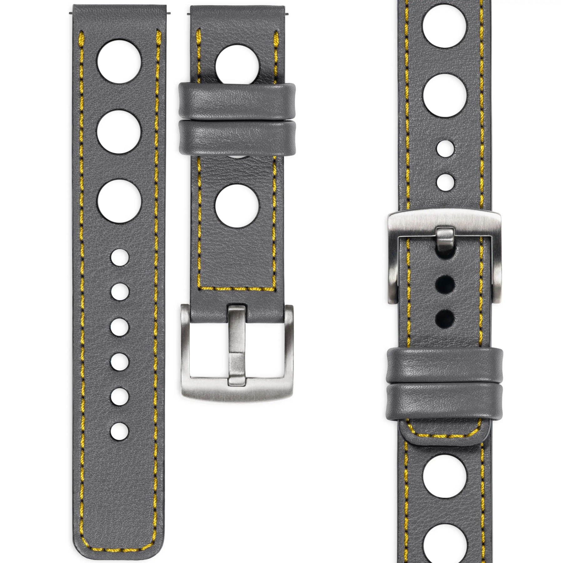 moVear Prestige R1 (Rally) 22mm Leather strap for watch / smartwatch | Gray, elegant Yellow stitching