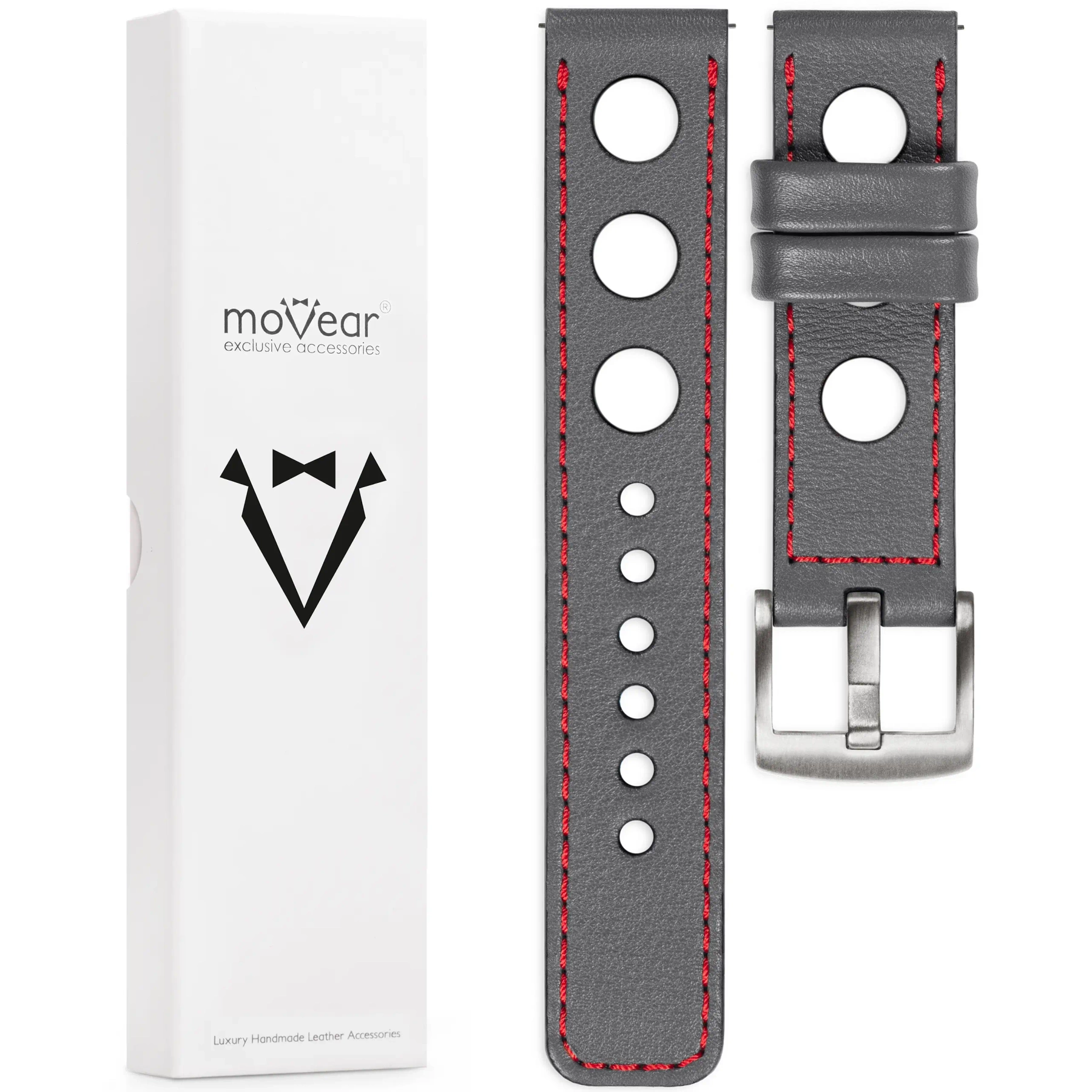 moVear Prestige R1 (Rally) 22mm Leather strap for watch / smartwatch | Gray, elegant Red stitching
