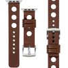 moVear Prestige R1 24mm Leather strap for Apple Watch 10 / 9 / 8 / 7 / 6 / 5 / 4 / SE (46/45/44mm) & Ultra (49mm) | Dark brown, elegant Red stitching