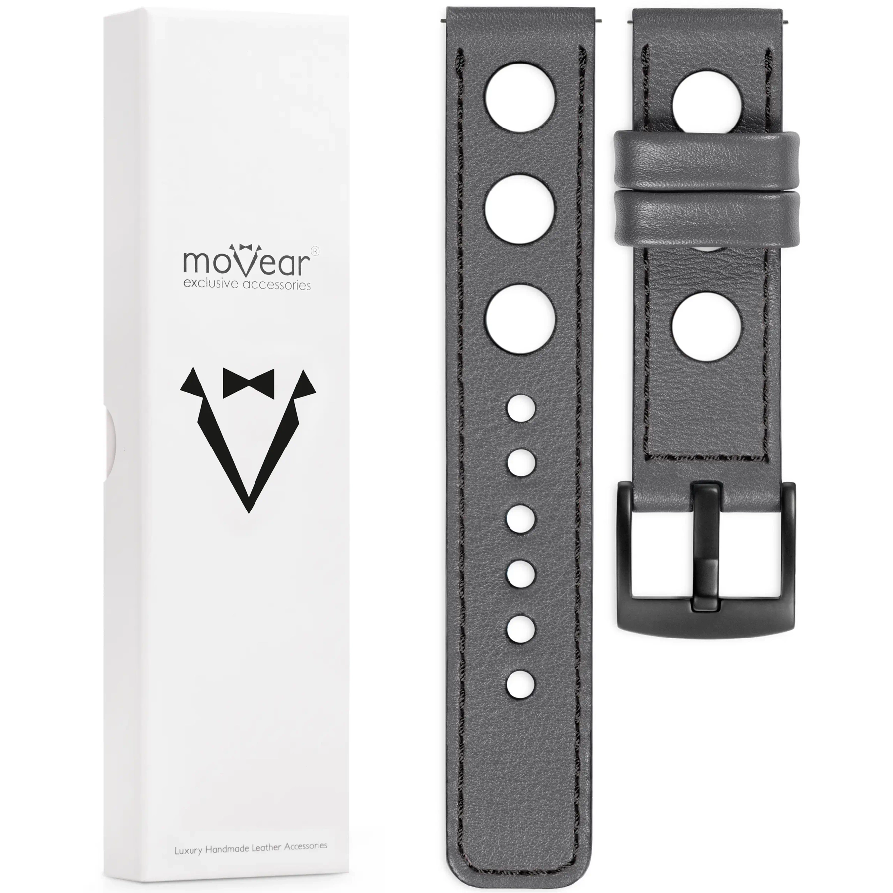 moVear Prestige R1 (Rally) 24mm Leather strap for watch / smartwatch | Gray, elegant Black stitching