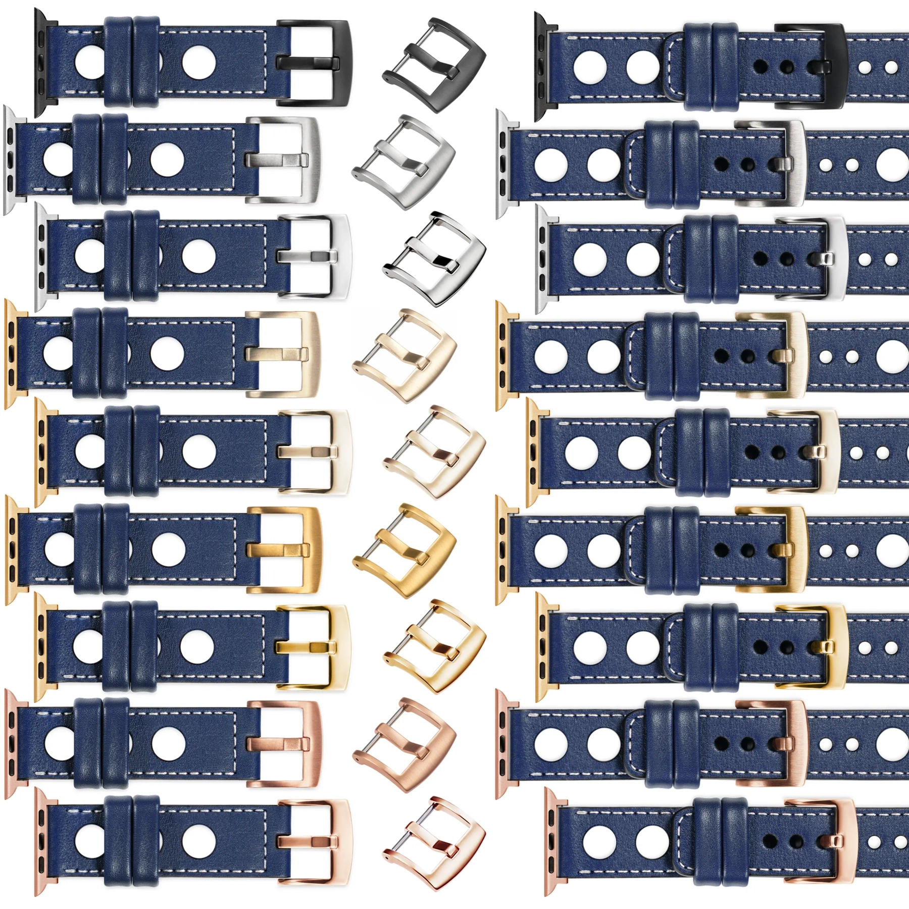 moVear Prestige R1 24mm Leather strap for Apple Watch 10 / 9 / 8 / 7 / 6 / 5 / 4 / SE (46/45/44mm) & Ultra (49mm) | Navy blue, elegant White stitching