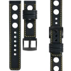 moVear Prestige R1 (Rally) 26mm Leather strap for watch / smartwatch | Black, elegant Yellow stitching