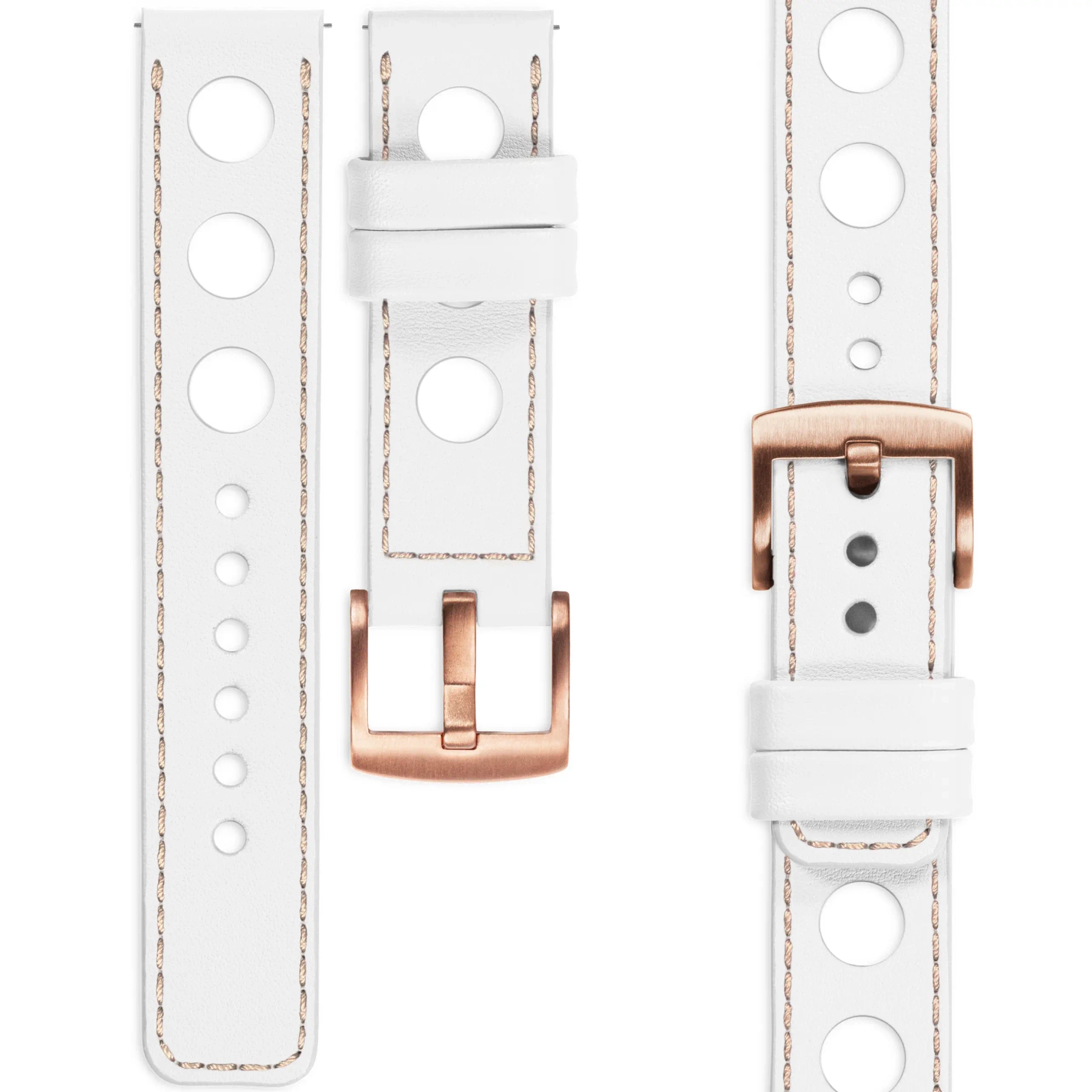 moVear Prestige R1 (Rally) 26mm Leather strap for watch / smartwatch | White, elegant Nude pink stitching
