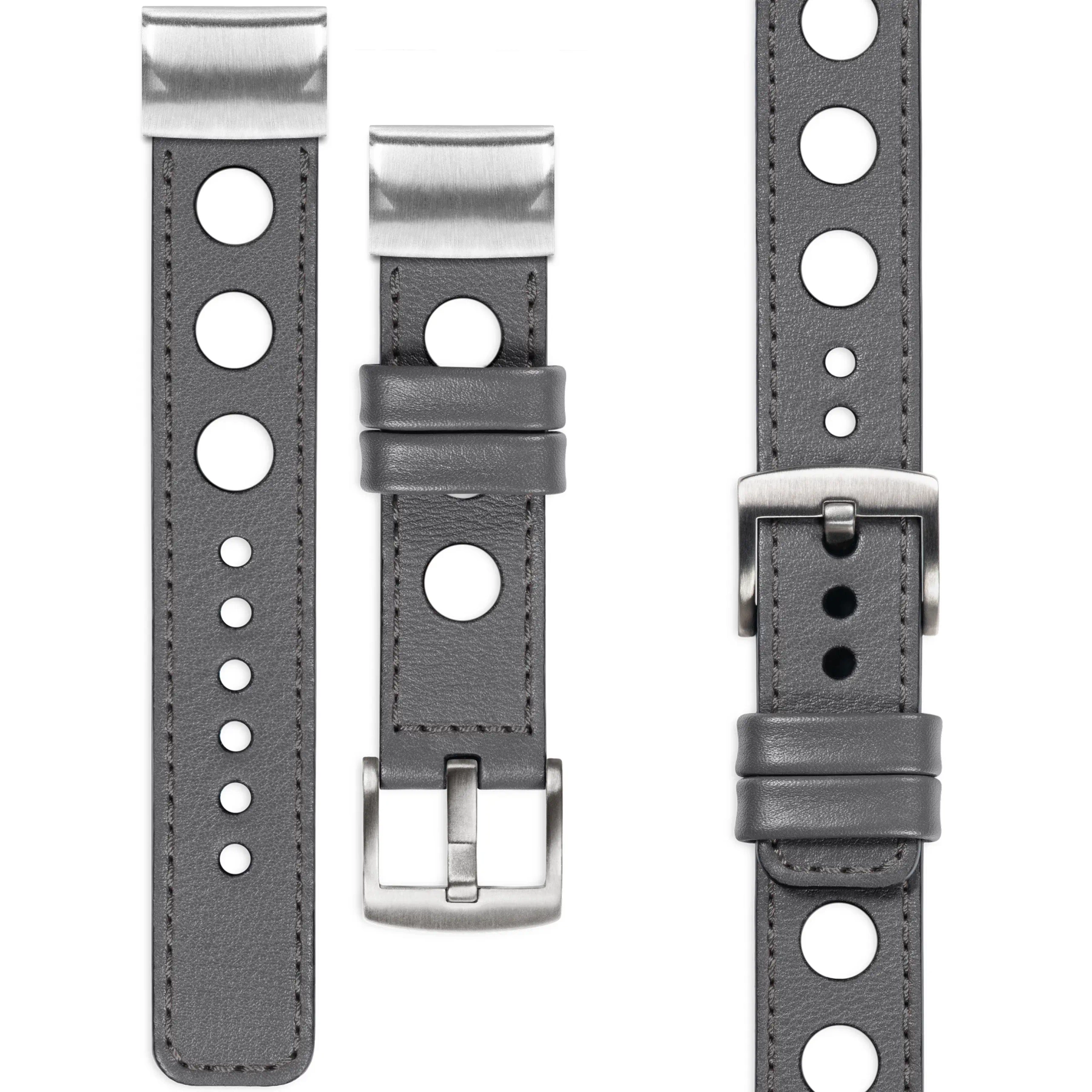 moVear Prestige R1 Leather strap for Garmin QuickFit 20mm (Fenix / Instinct - 43/42/40mm) | Gray, elegant Graphite stitching