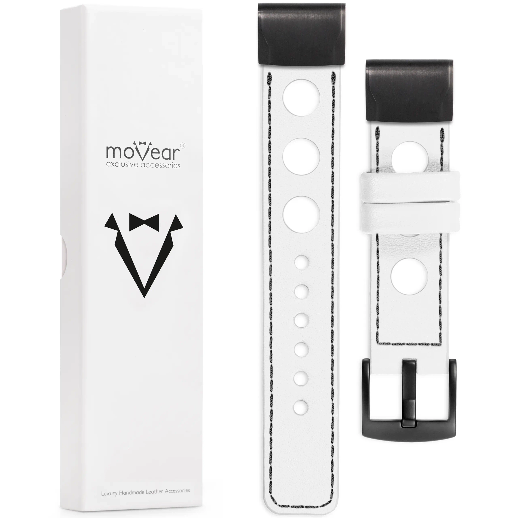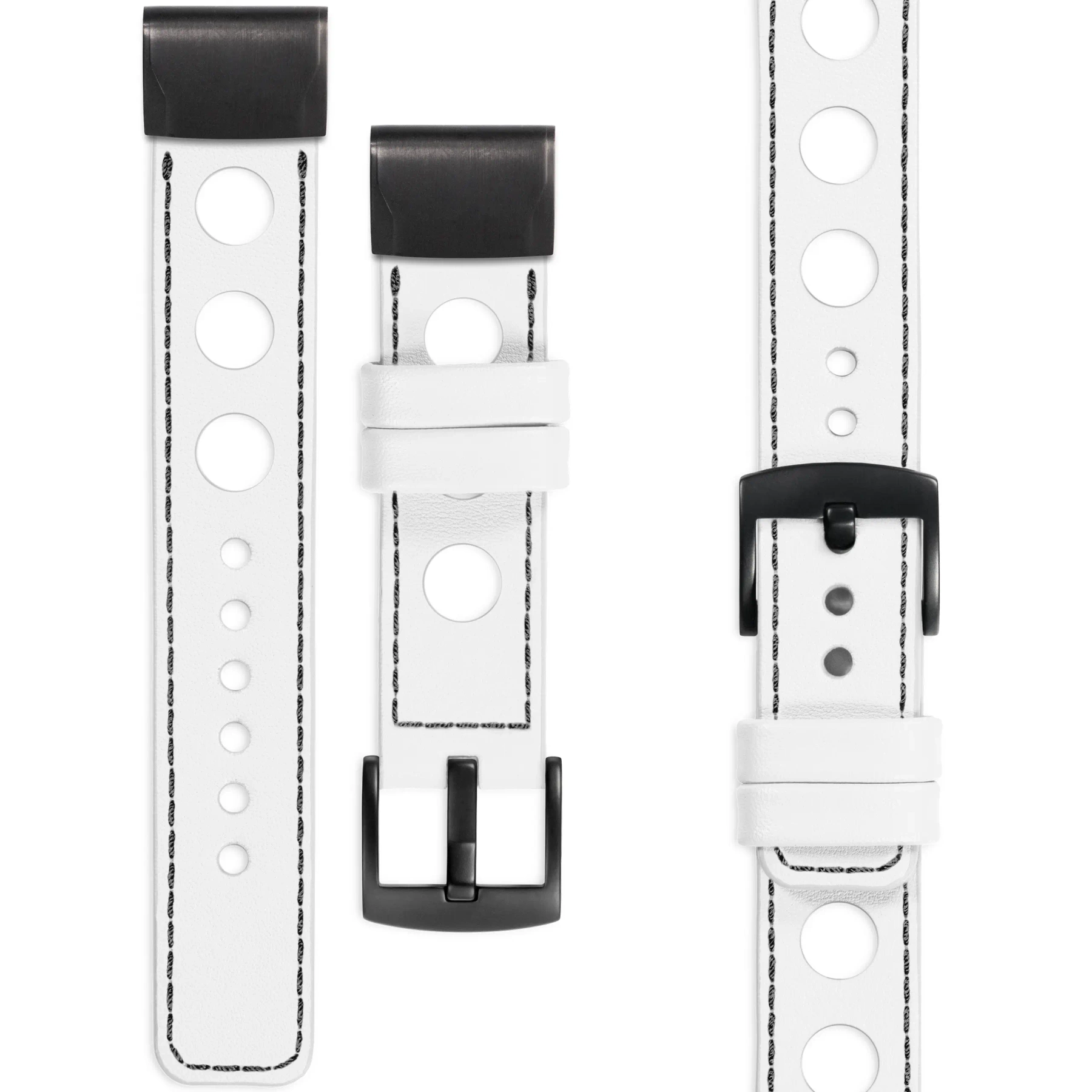 moVear Prestige R1 Leather strap for Garmin QuickFit 20mm (Fenix / Instinct - 43/42/40mm) | White, elegant Black stitching
