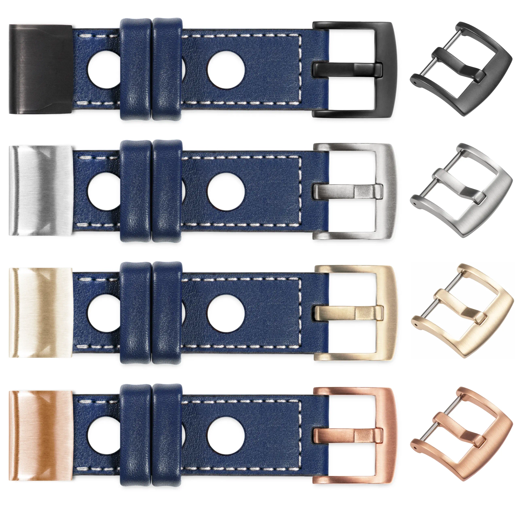 We make premium leather straps for Garmin QuickFit 26mm (Fenix / Epix / Quatix / Tactix / Enduro - 51mm) in many different configurations. If the default buckle and adapter (Silver) needs to be changed to a different color - we offer the following options: