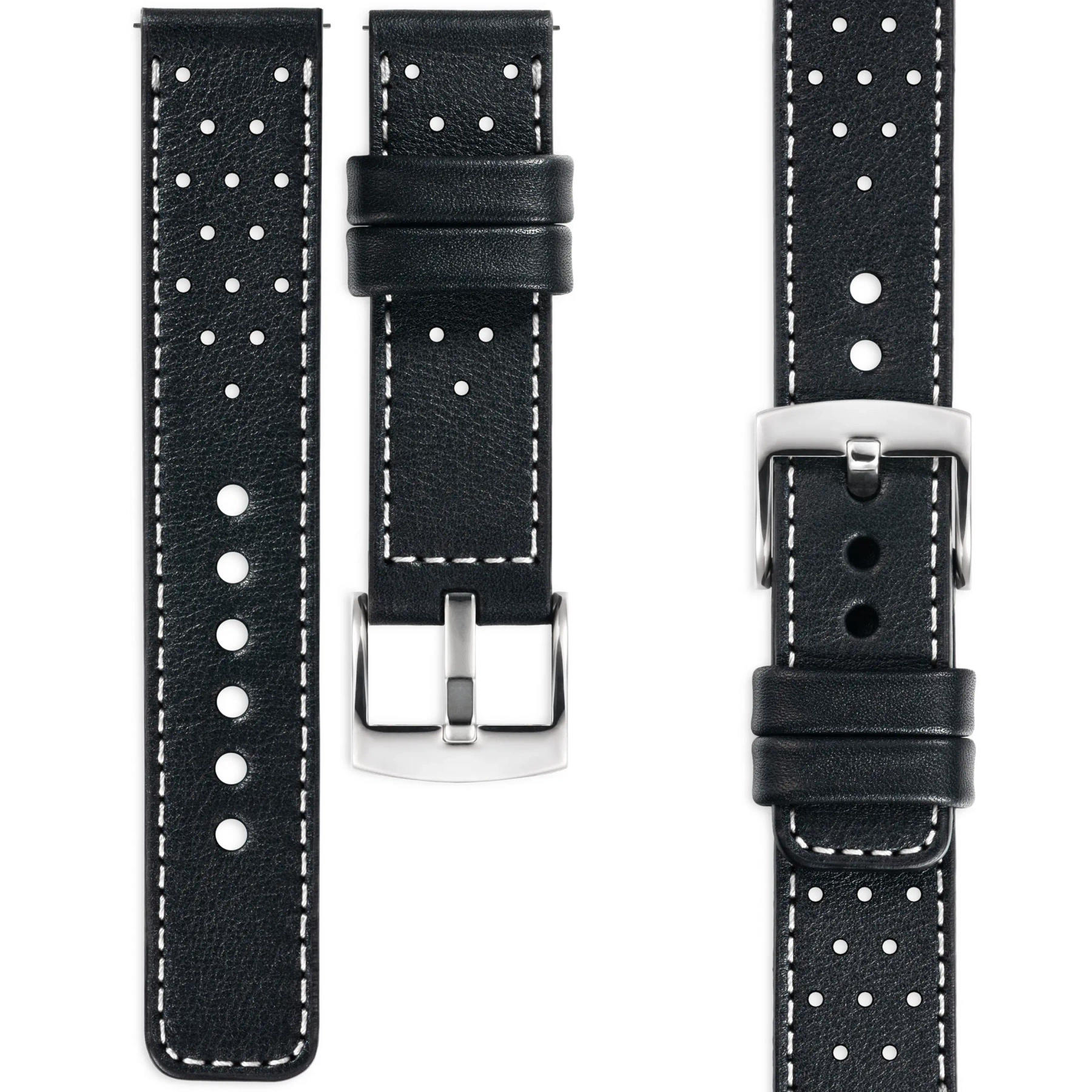moVear Prestige R2 18mm Leather strap for Huawei Watch GT 5 4 / Pro (42/41mm) | Black, elegant White stitching