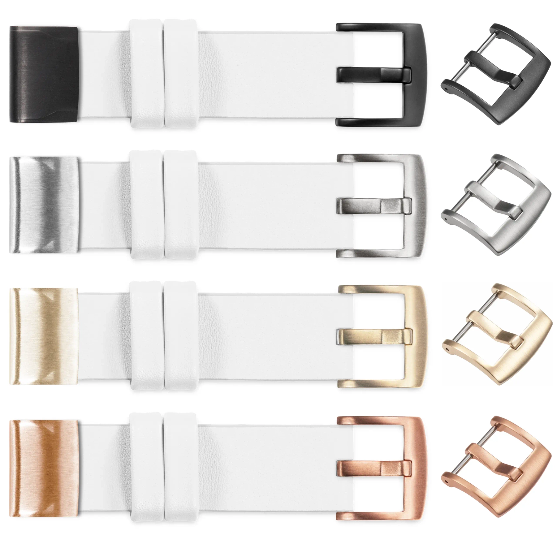 We make premium leather straps for Garmin QuickFit 20mm (Fenix / Instinct - 43/42/40mm) in many different configurations. If the default buckle and adapter () needs to be changed to a different color - we offer the following options: